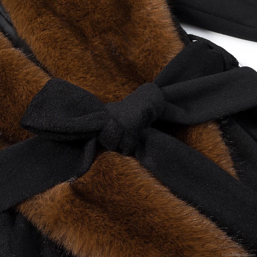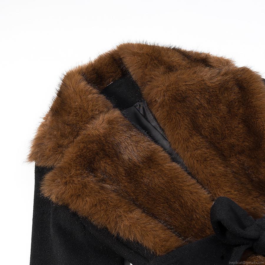 Solid Color, Splice, Fur Collar, Faux Fur Cuffs, Belt