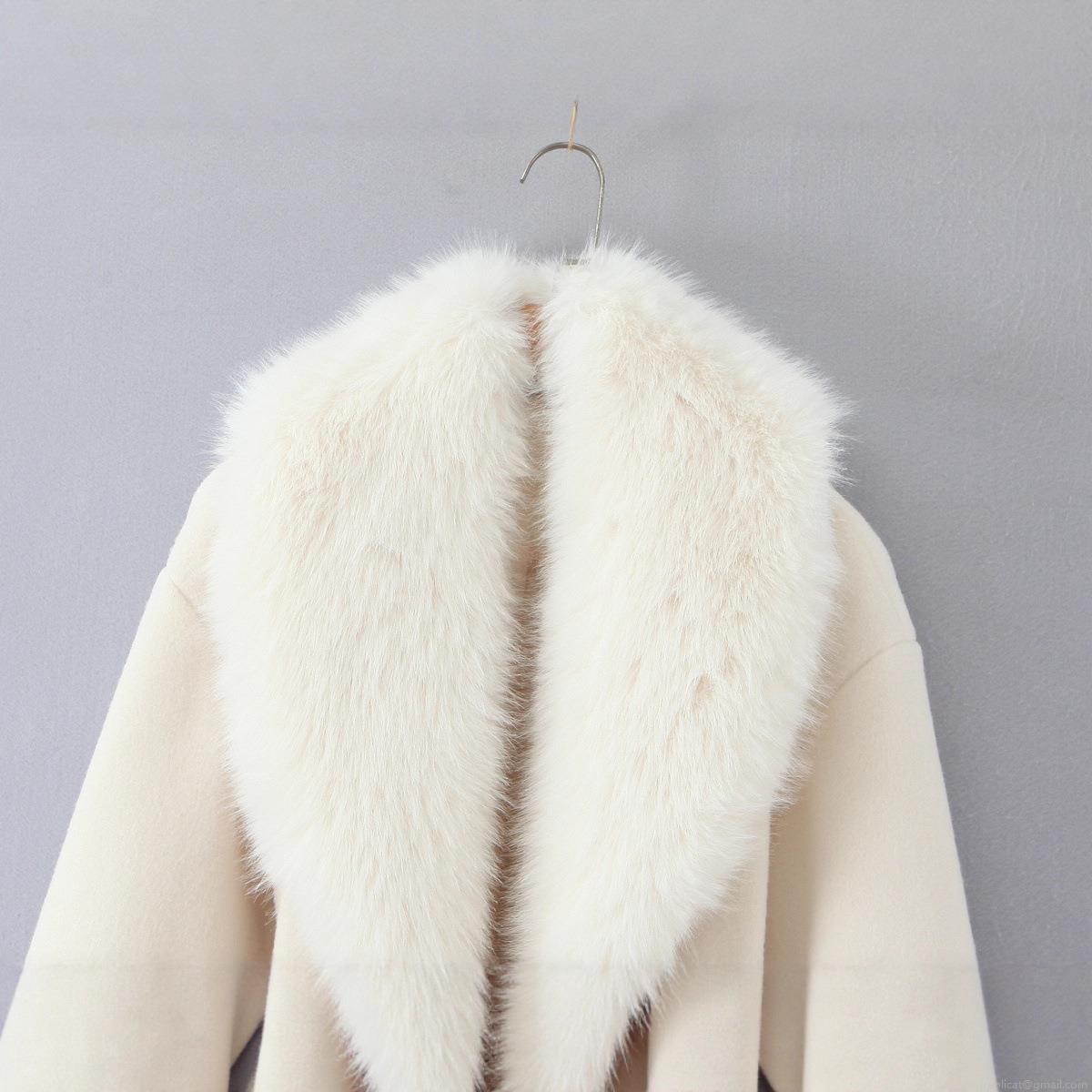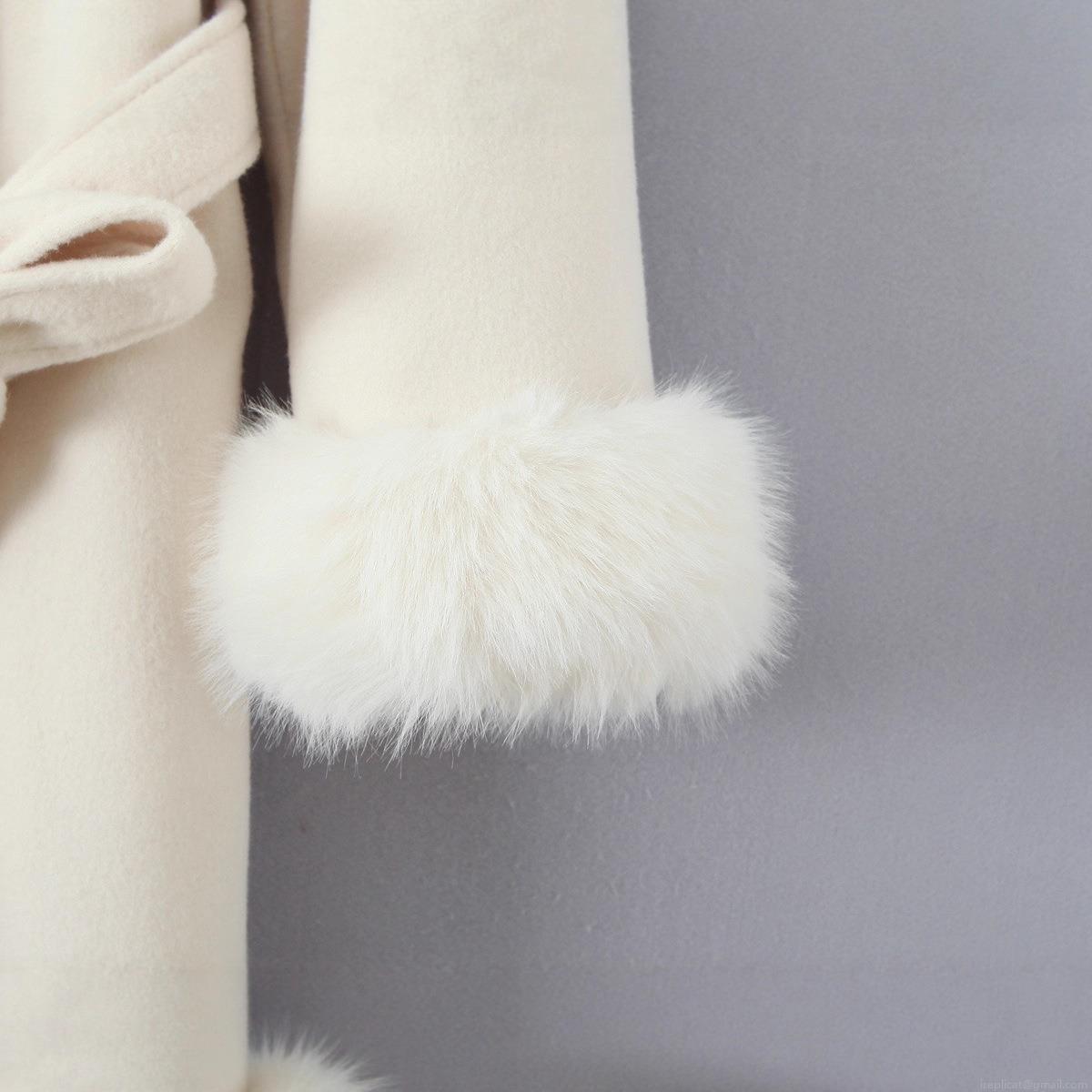 • Elegant Women's Long Woolen Coat With Faux Fur Collar And Cuffs Warm Winter Overcoat With Belt Solid Color Polyester Outerwear For Women Streetwear Style