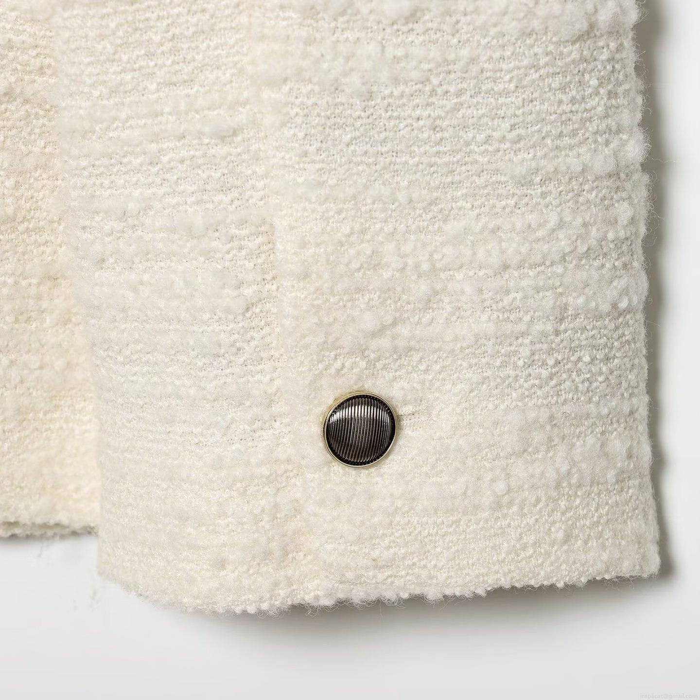 Solid Color, Pocket, Tweed Texture, Metal Buttons