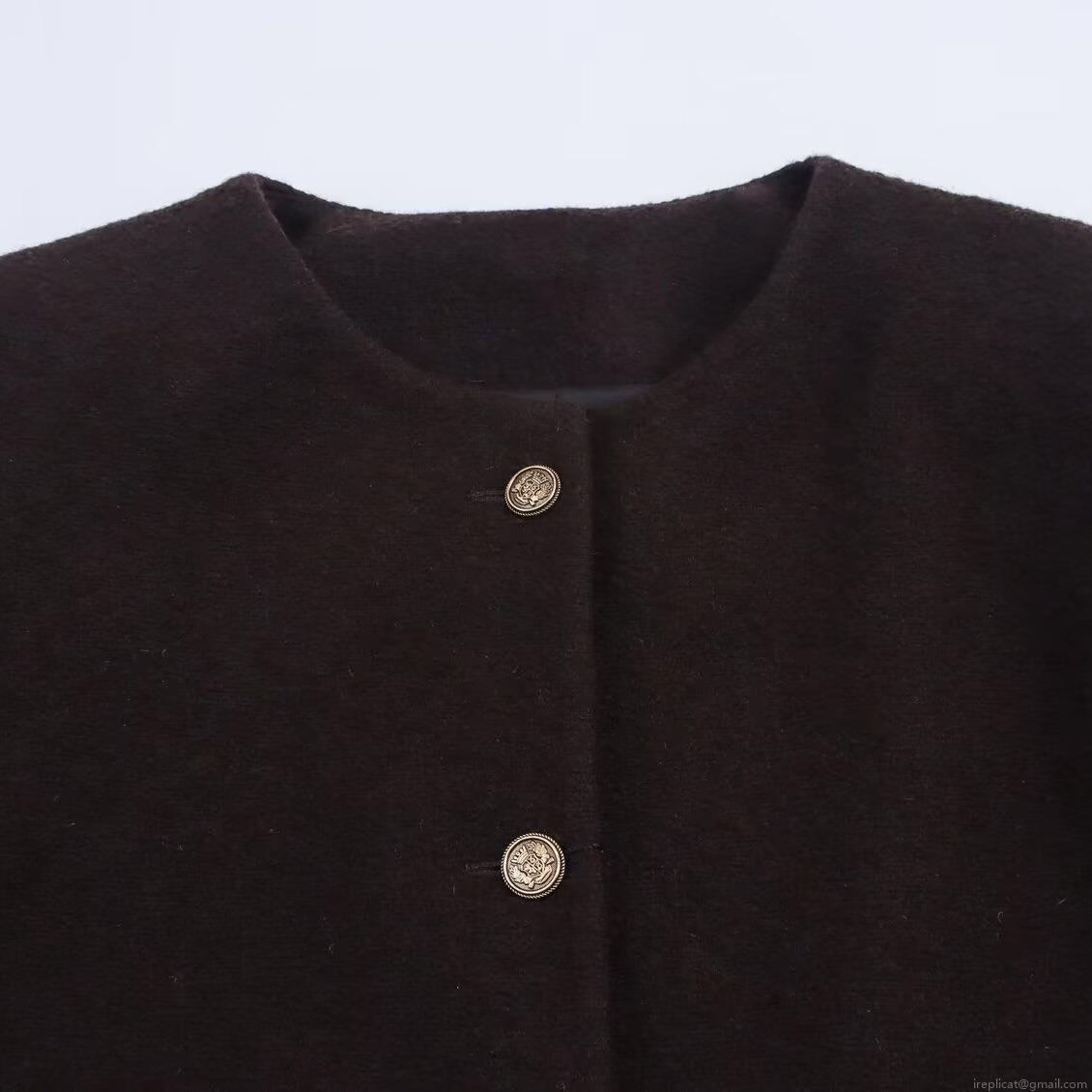 • Elegant Women's Tweed Short Jacket Round Neck Long Sleeve Single Breasted Metal Button Autumn Winter Outerwear Vintage Style Coat