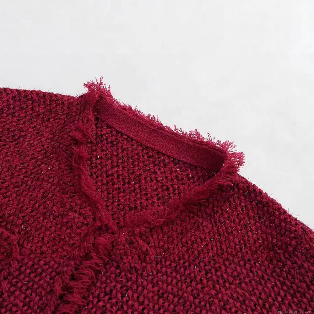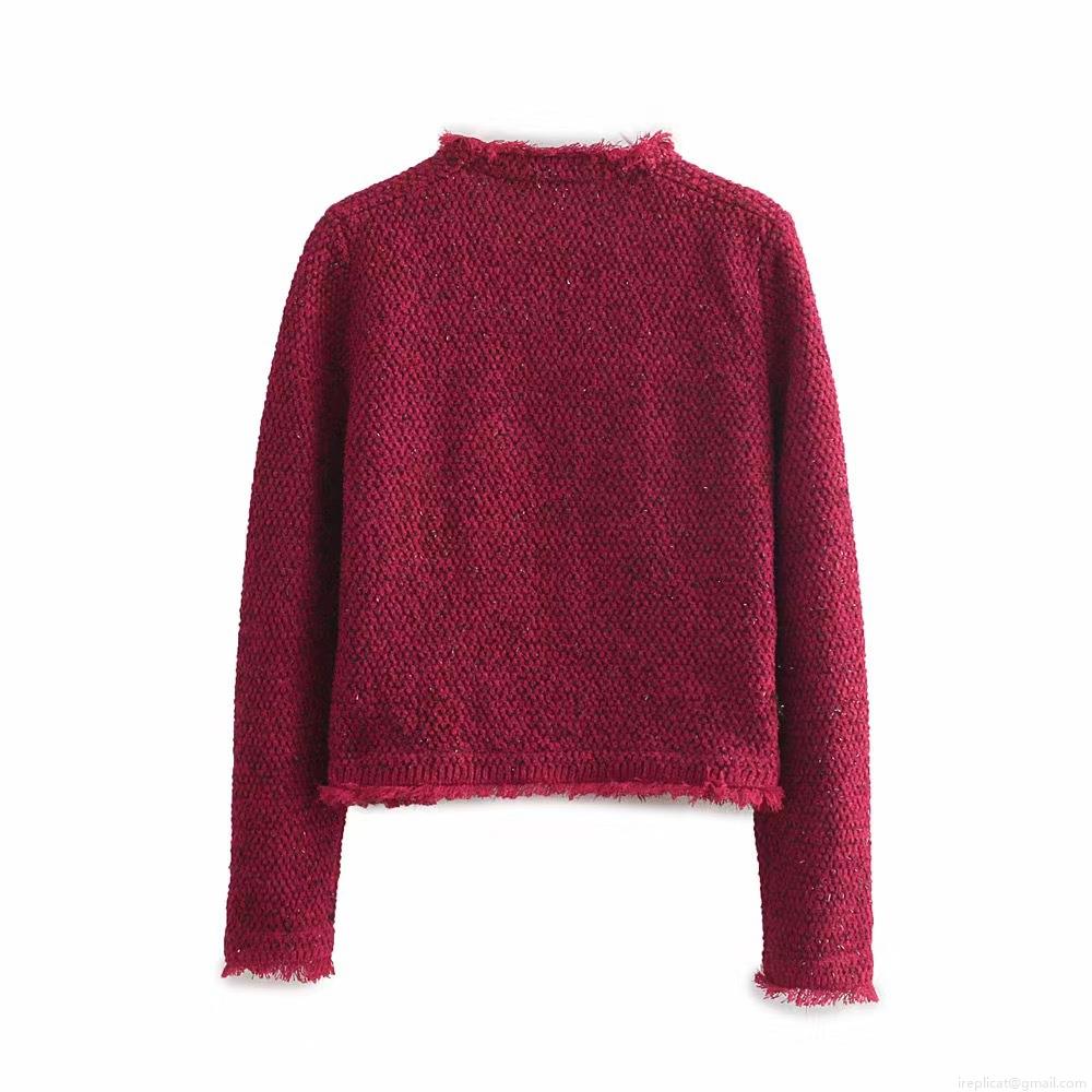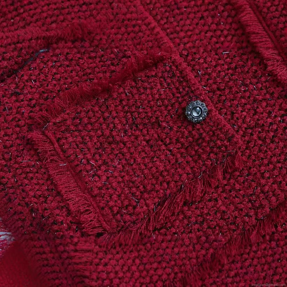 • Elegant Women's Wine Red Tweed Jacket Round Neck Single Breasted Socialite Long Sleeve Outerwear With Tassel Fringe Pockets For Lady Autumn Winter
