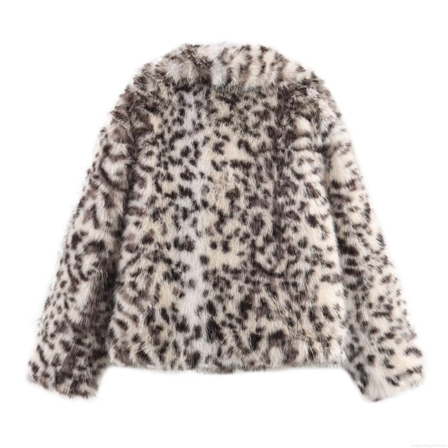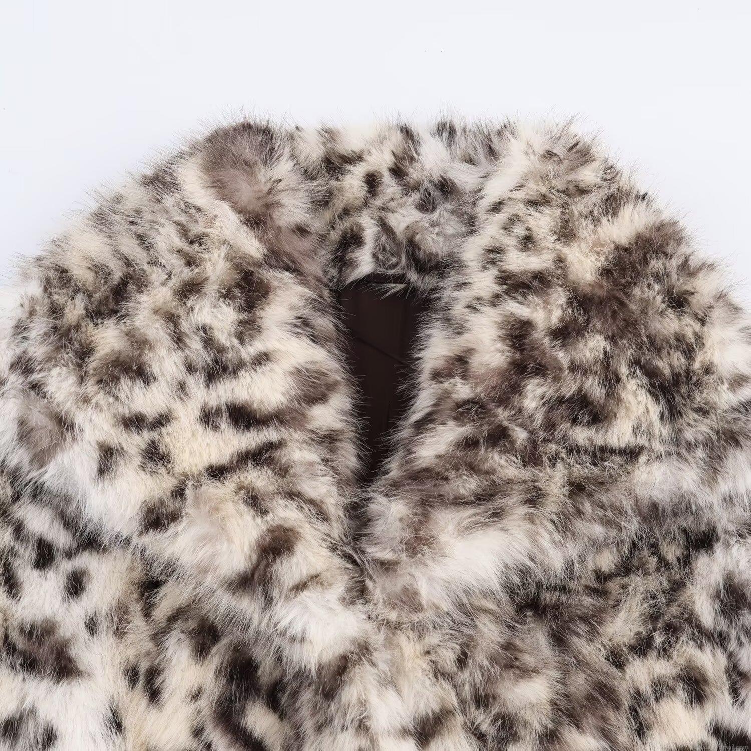 Fashion Women Leopard Print Faux Fur Coat Winter Warm Oversized Polyester Jacket Elegant Long Sleeve Lapel Outerwear Luxury Socialite Style Short Coat