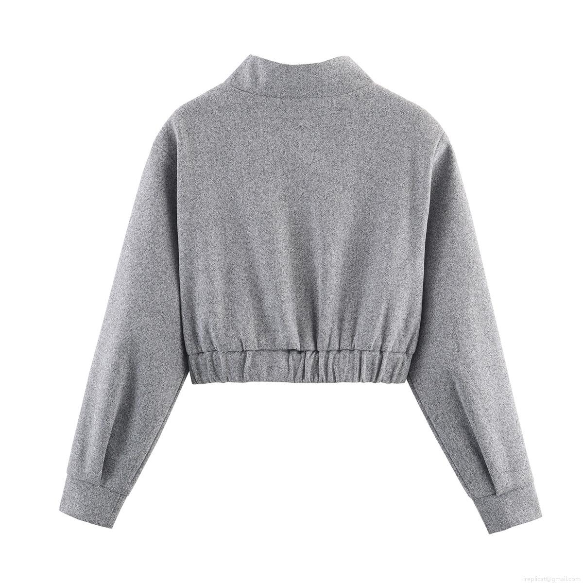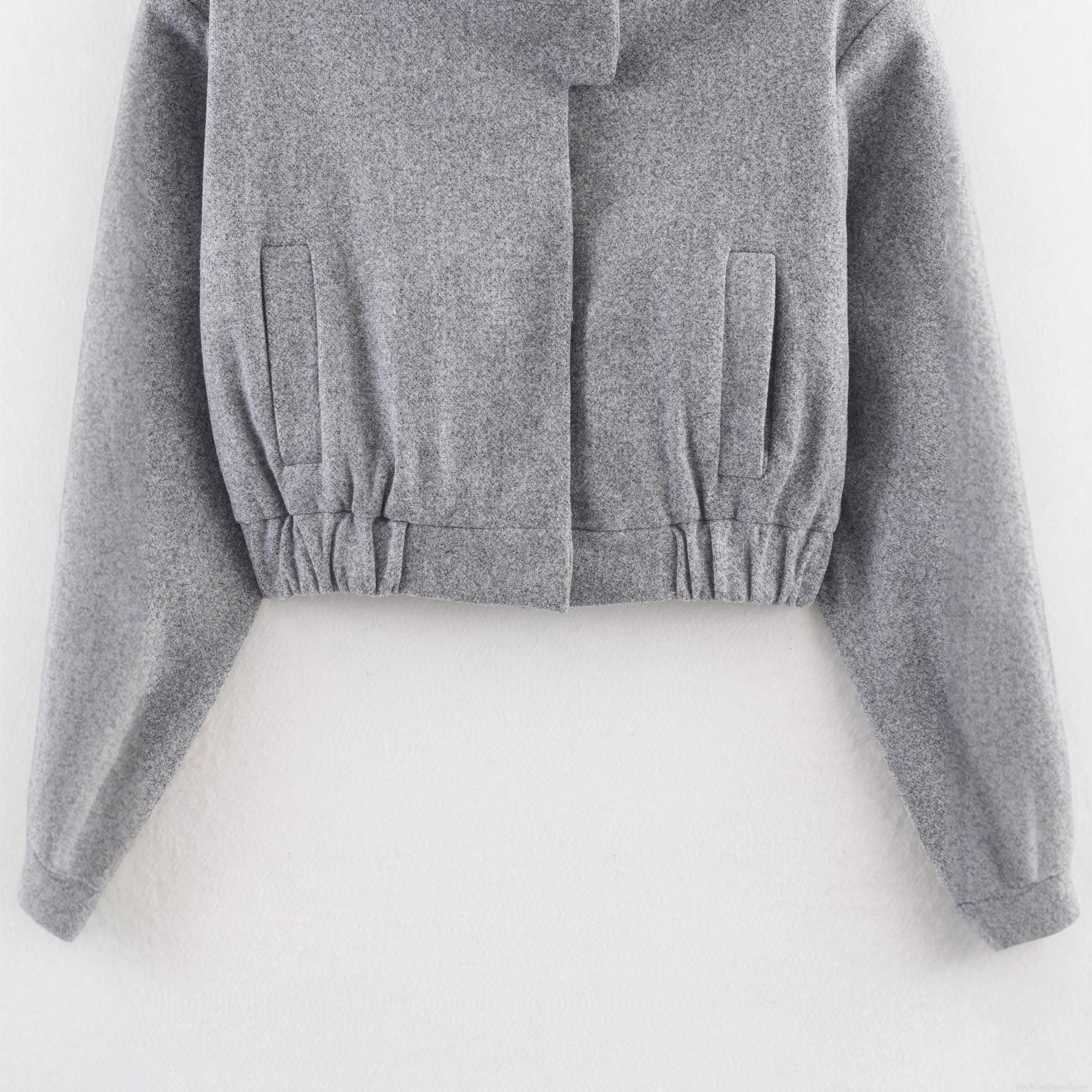 • French Chic Women's Short Jacket Solid Silver Grey Polyester Loose Long Sleeve Casual Outerwear Fashion Lapel Button Down Coat For Women Daily Wear
