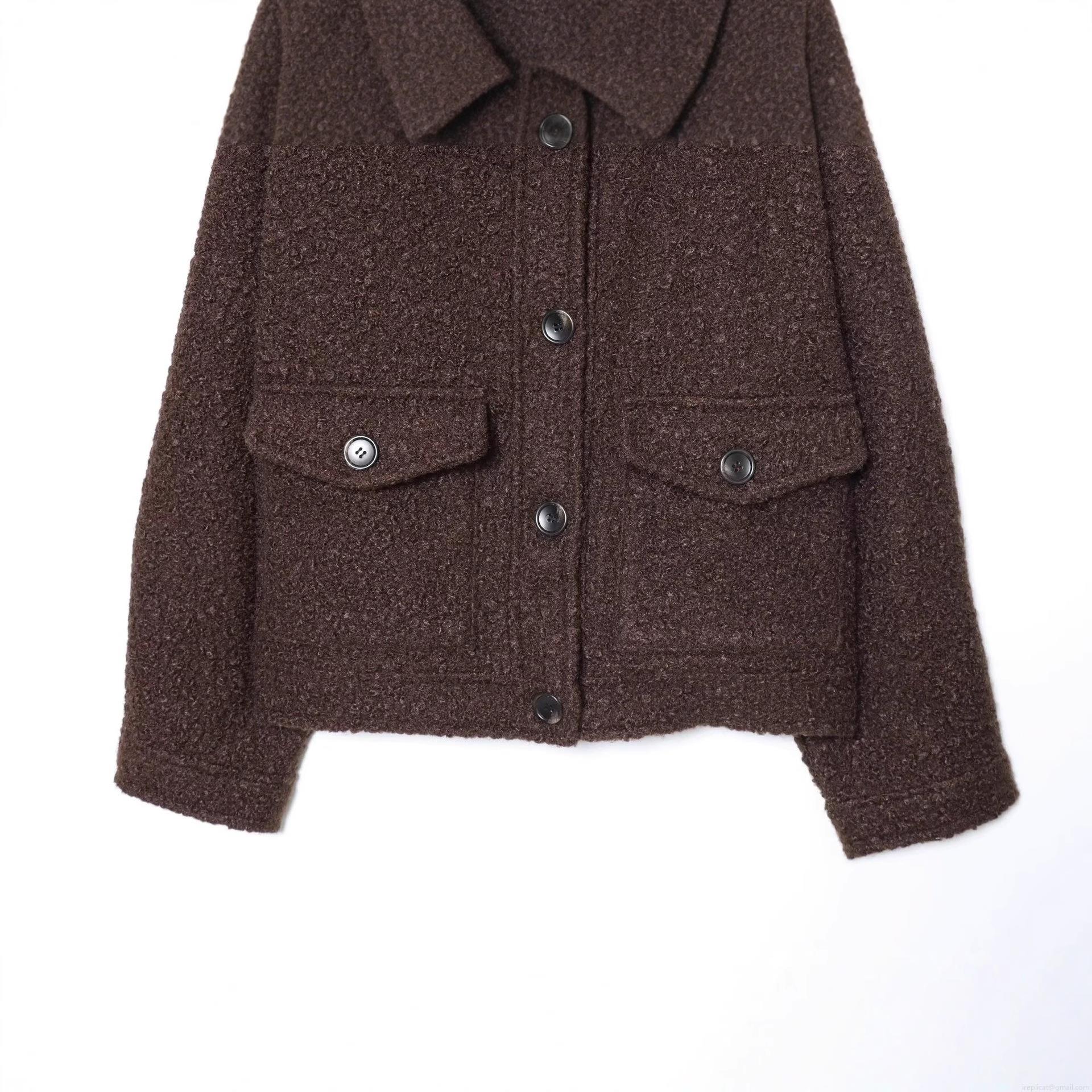 French Style Women's Retro Short Jacket With Black Faux Fur Collar Elegant Dark Coffee Bouclé Coat Single Breasted Thick Winter Outerwear For Ladies