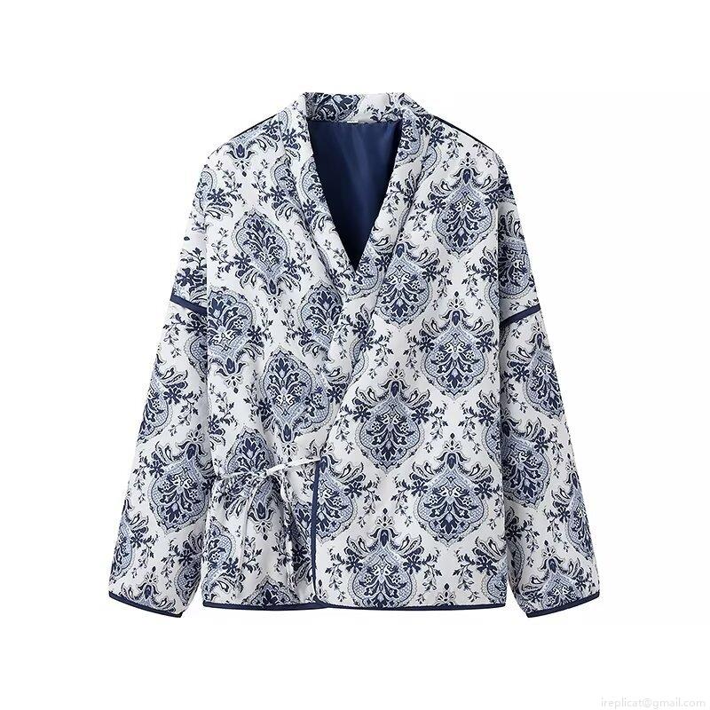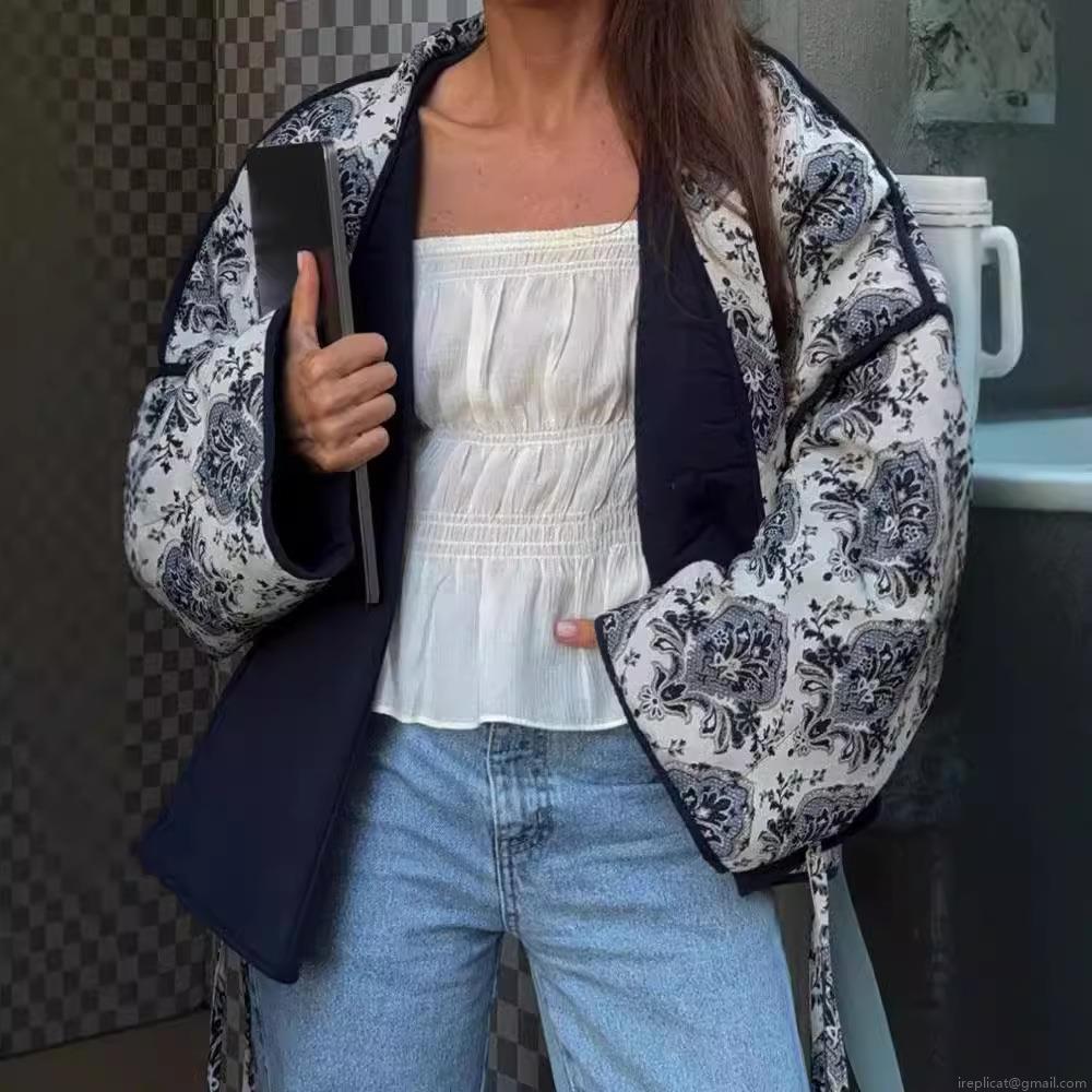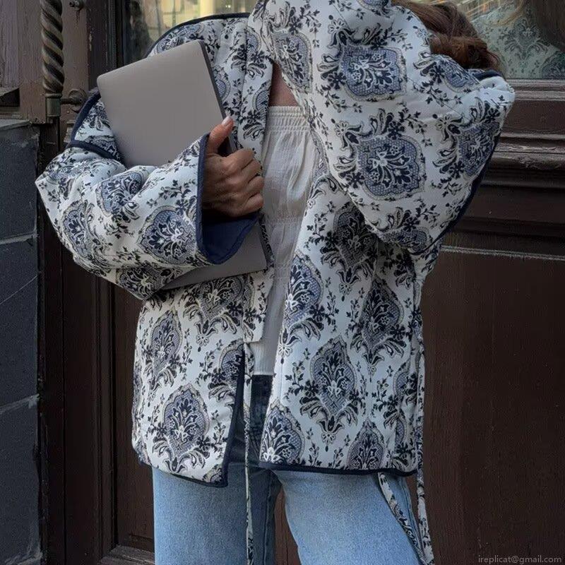 • Retro Paisley Printed Quilted Cotton Jacket Women V-Neck Lace-up Loose Fit Long Sleeve Lightweight Padded Coat For Autumn Casual Streetwear Boho Style Outwear