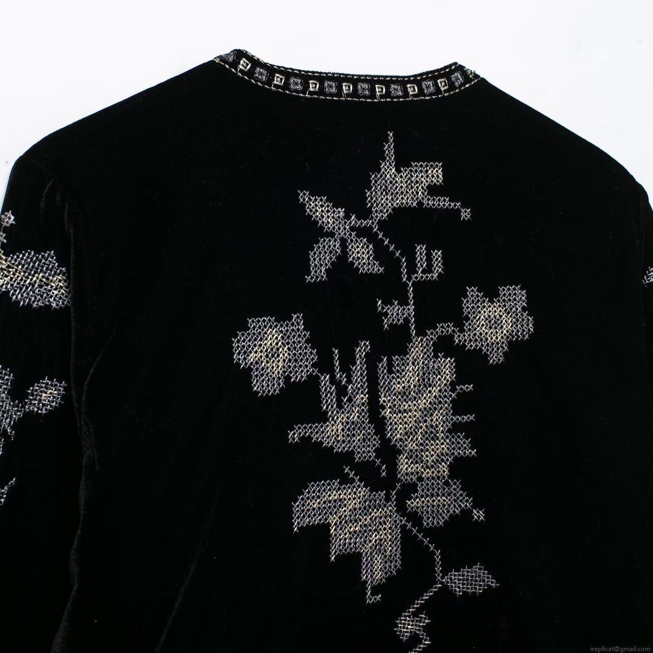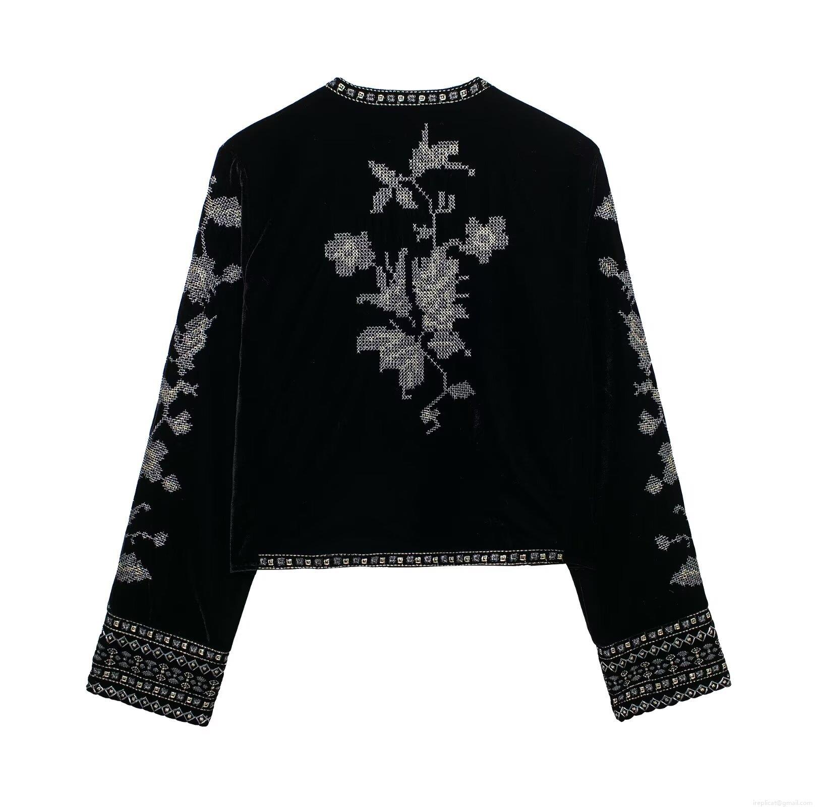 • Vintage Black Velvet Jacket With Silver Floral Embroidery And Beaded Trim Elegant Short Cardigan Outerwear For Autumn Winter Women Party Wear