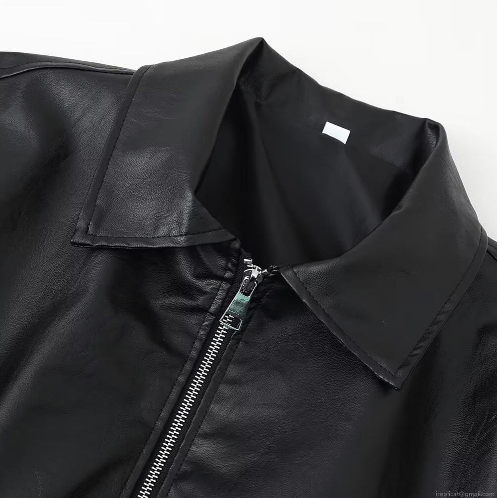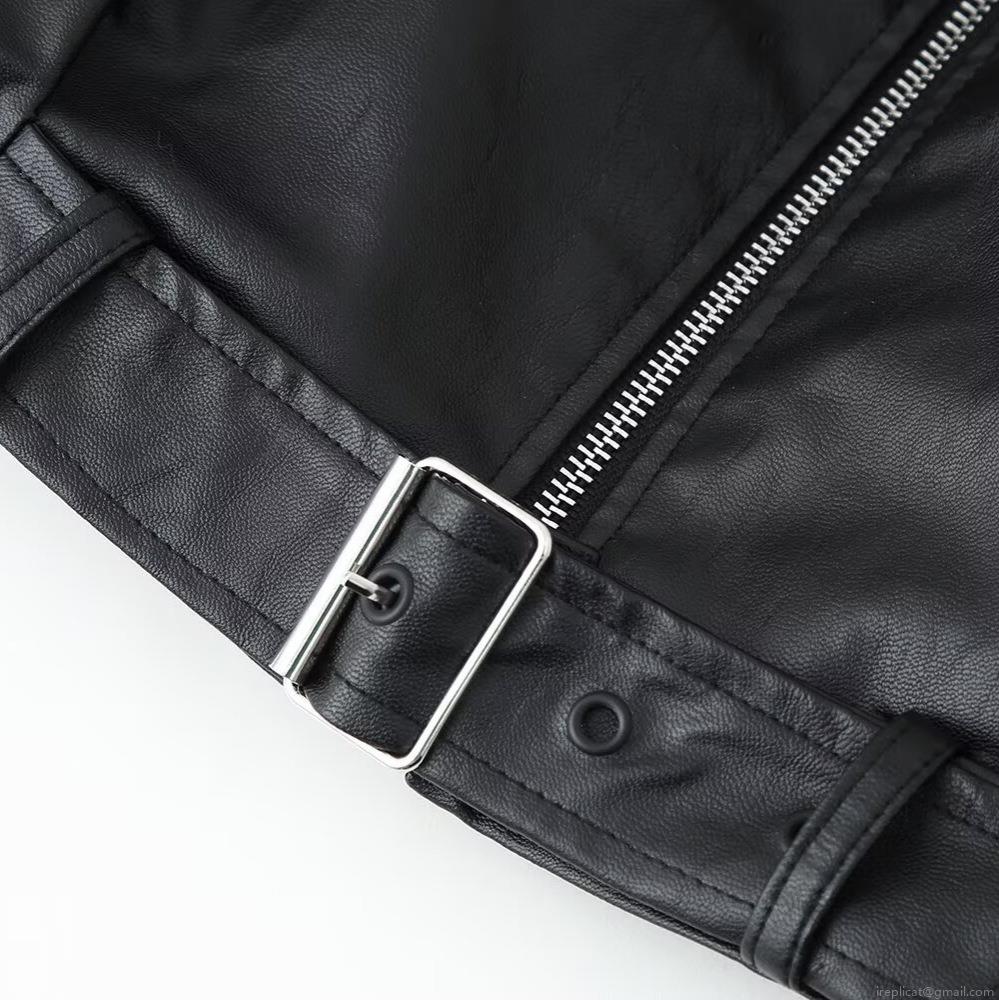 • Vintage Faux PU Leather Jacket For Women Long Sleeve Lapel Collar Zip Up Biker Coat With Belt Oversized Streetwear Autumn Outerwear