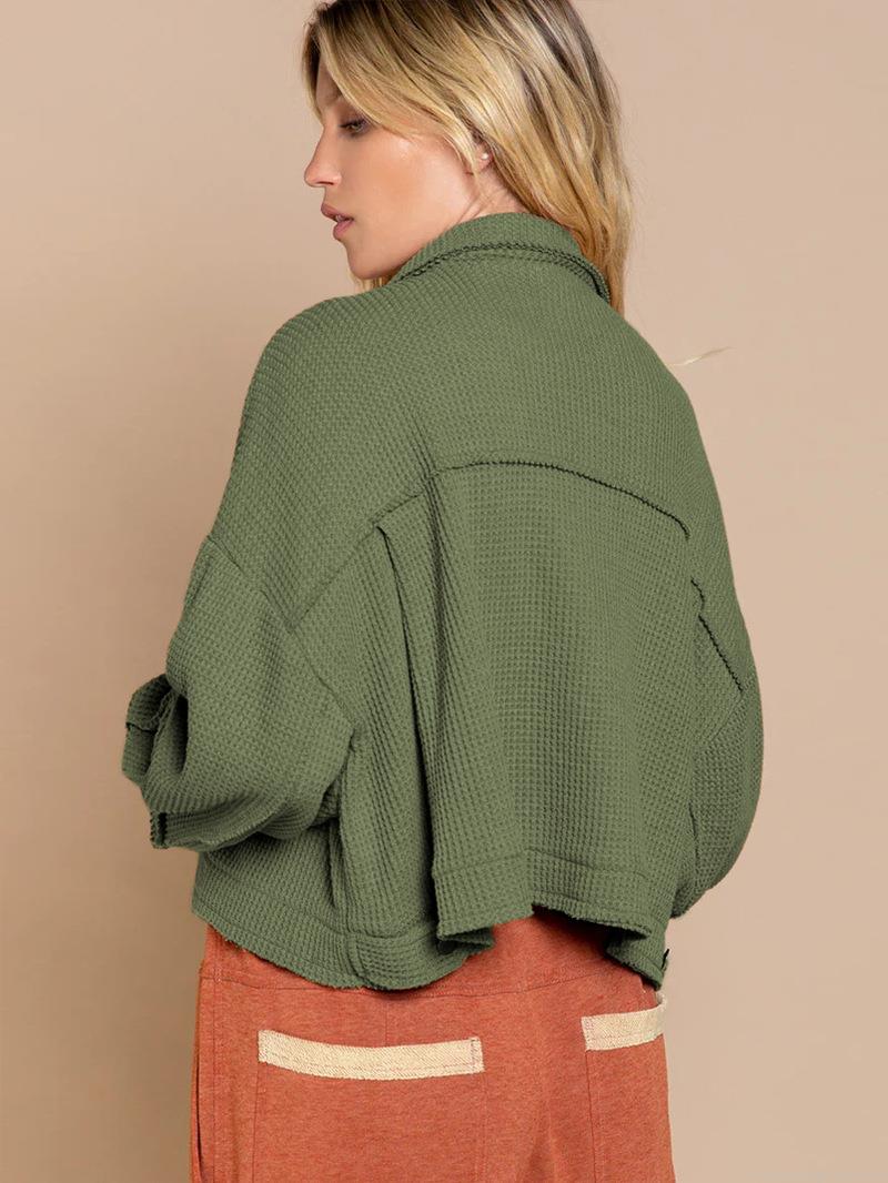 Solid Color, Buttons, Waffle Texture, Flap Pocket