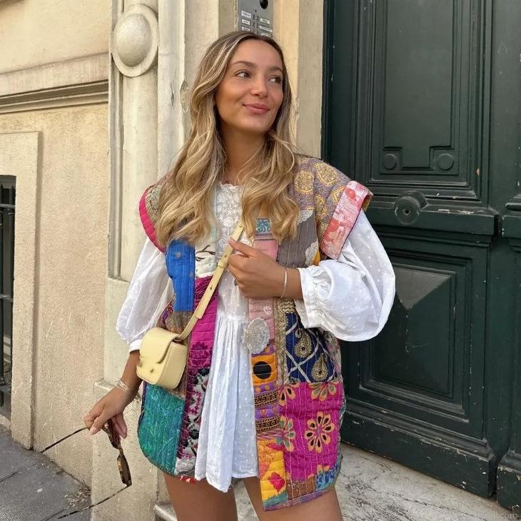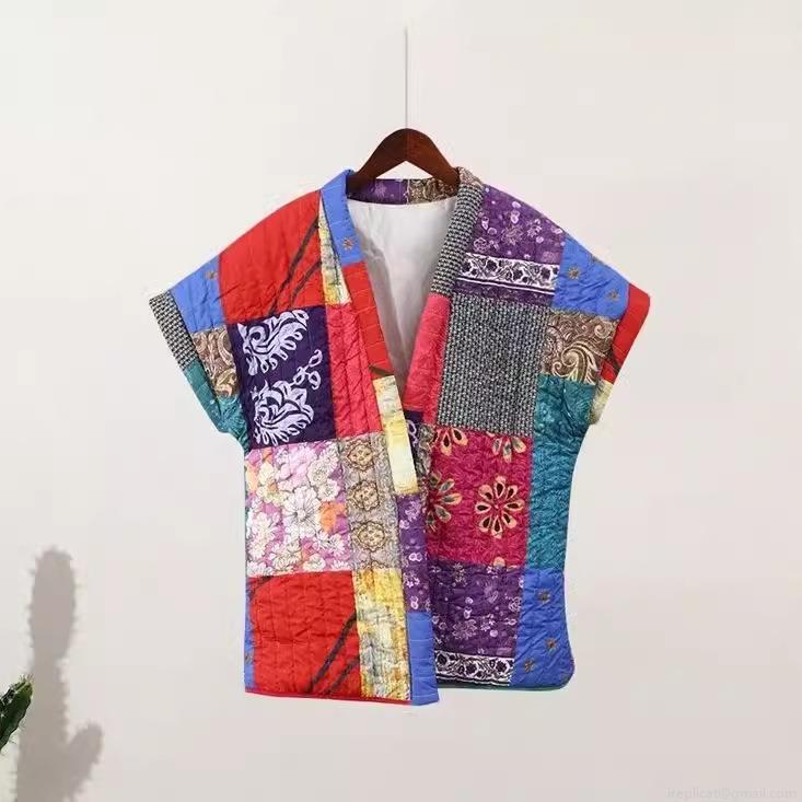 • Women Bohemian Patchwork Quilted Vest Sleeveless V-Neck Open Front Waistcoat Vintage Ethnic Printed Cotton Blend Outerwear Top For Lady Casual Style