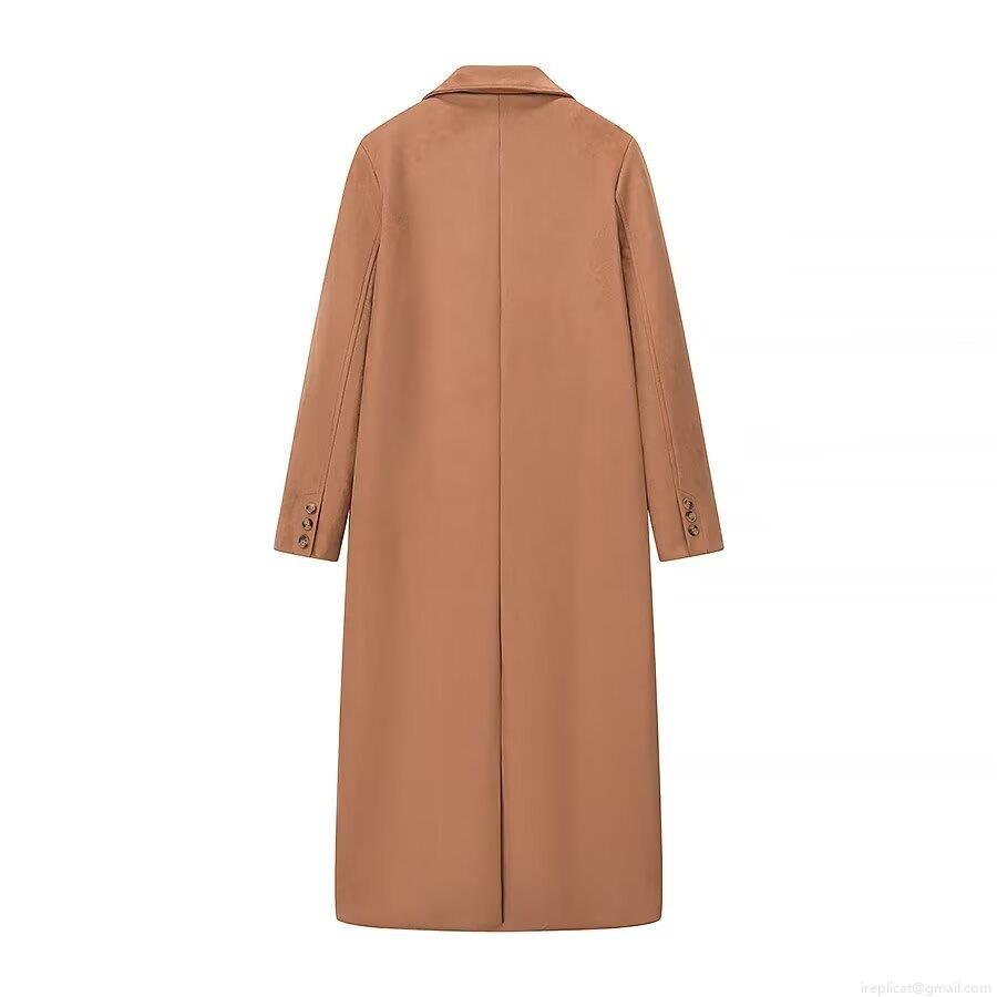 • Women British Style Faux Suede Extra Long Coat Double Breasted Suit Collar Polyester Solid Color Outerwear For Autumn Winter Casual Office Retro Jacket