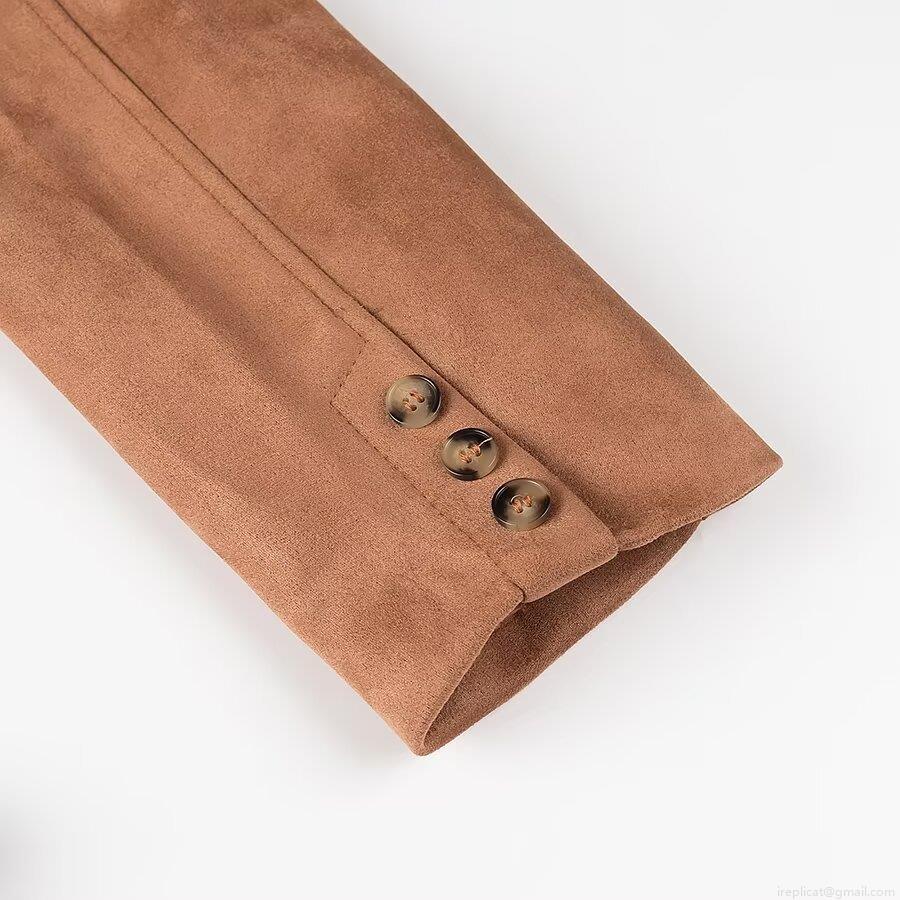Solid Color, Buttons, Double-breasted, Suede Texture