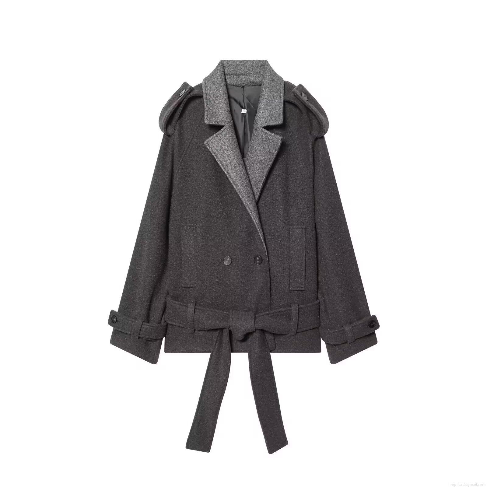 • Women British Style Short Woolen Coat Contrasting Lapel Double Breasted Jacket With Belt Epaulettes Autumn Winter Fashion Outerwear
