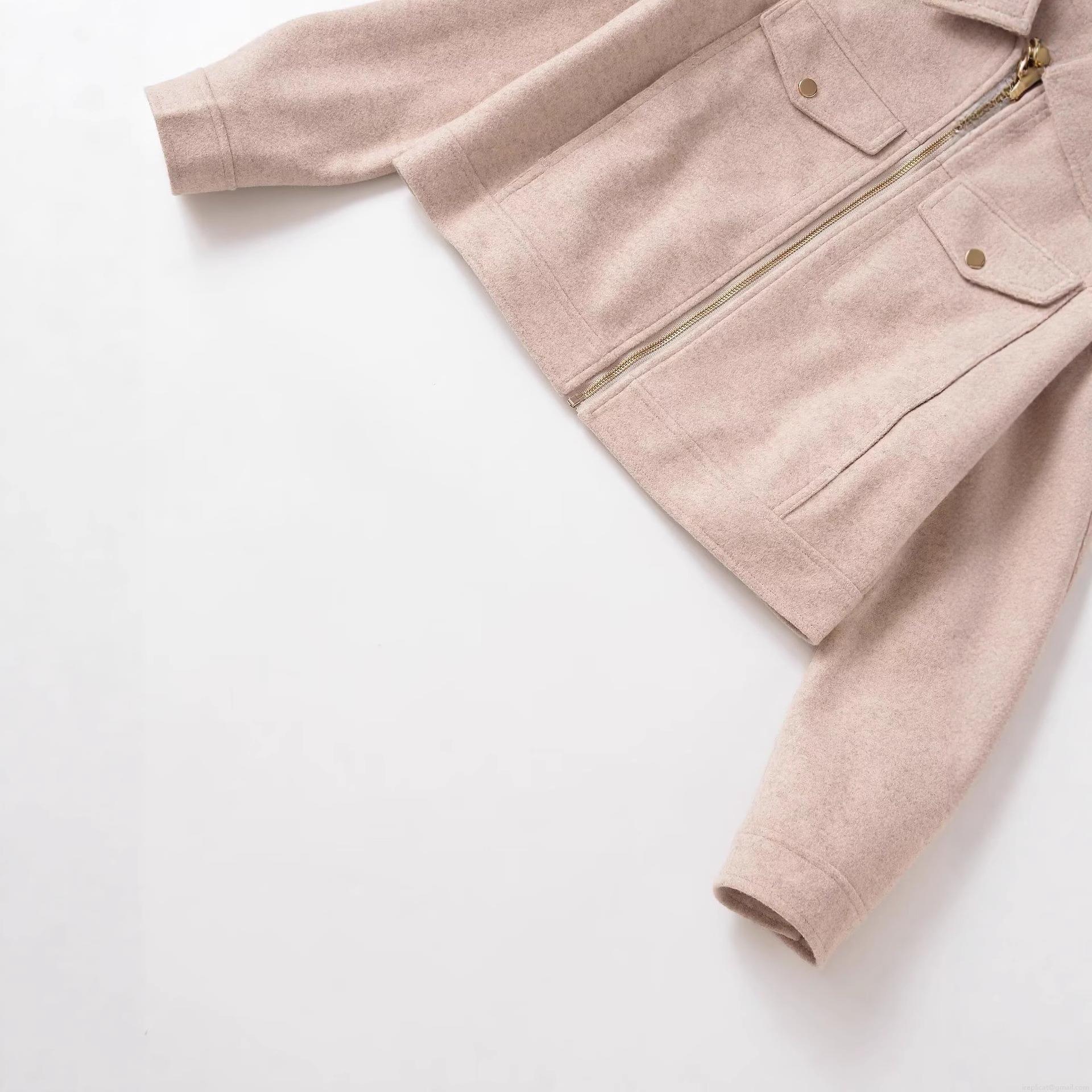 • Women Casual Zipper Jacket Coat Soft Wool-Like Material Loose Fit Turn-Down Collar With Pockets For Spring Autumn Winter Streetwear Ladies Outerwear