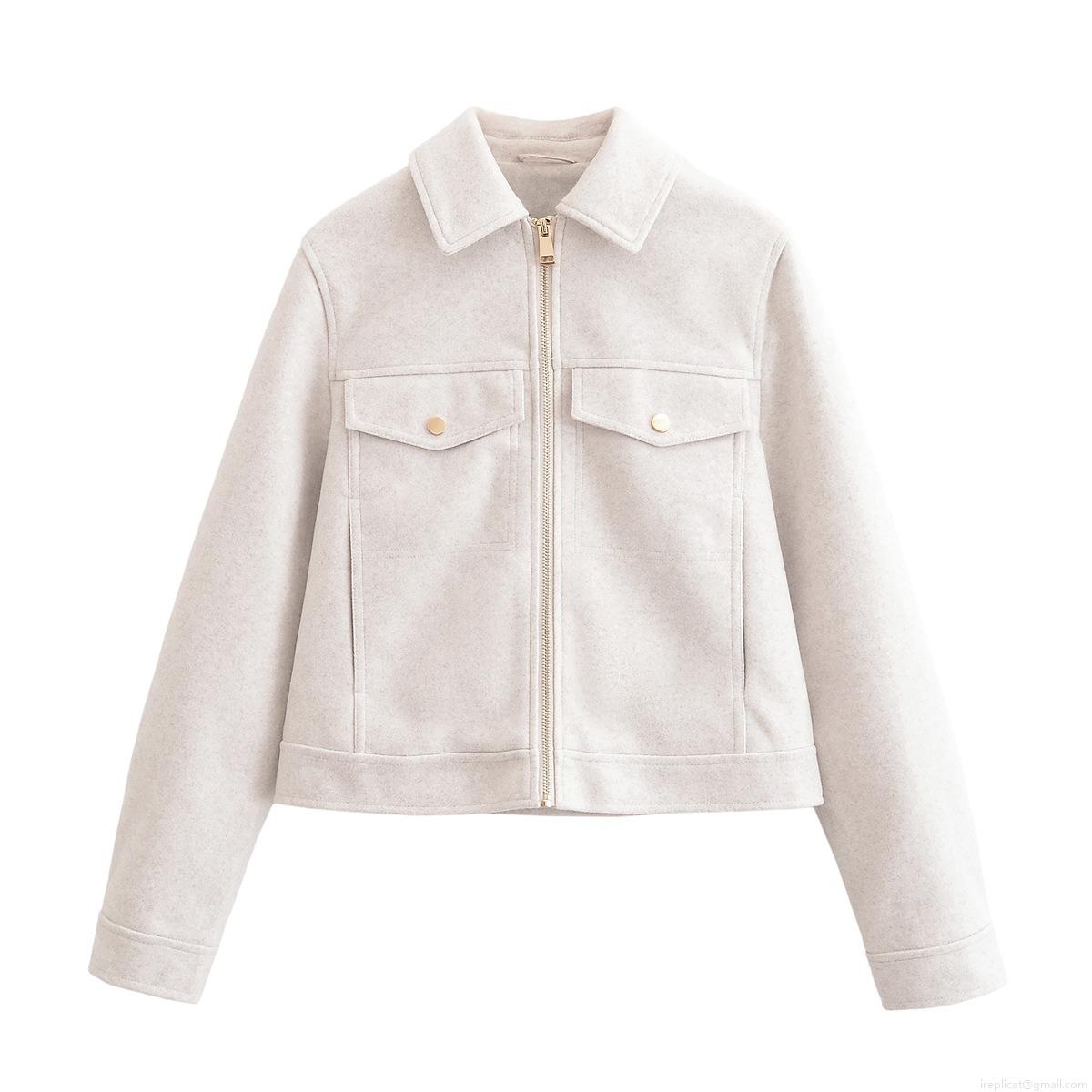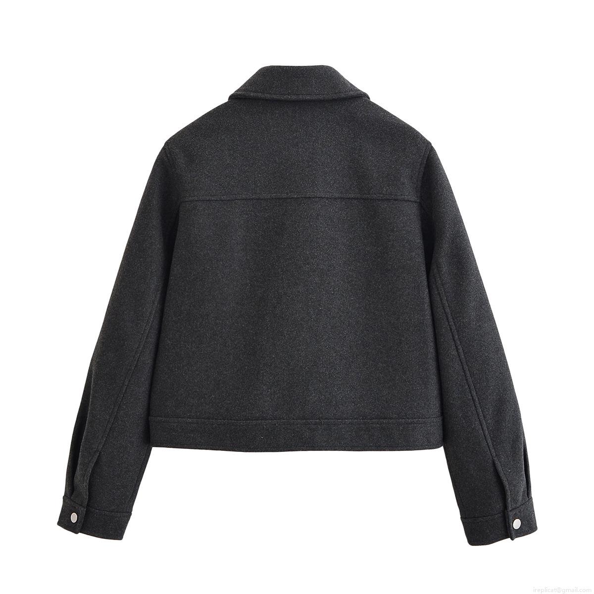• Women Classic Lapel Short Jacket Elegant Polyester Woolen Cropped Coat With Zipper Flap Pockets Solid Color Casual Outwear For Ladies Daily Wear