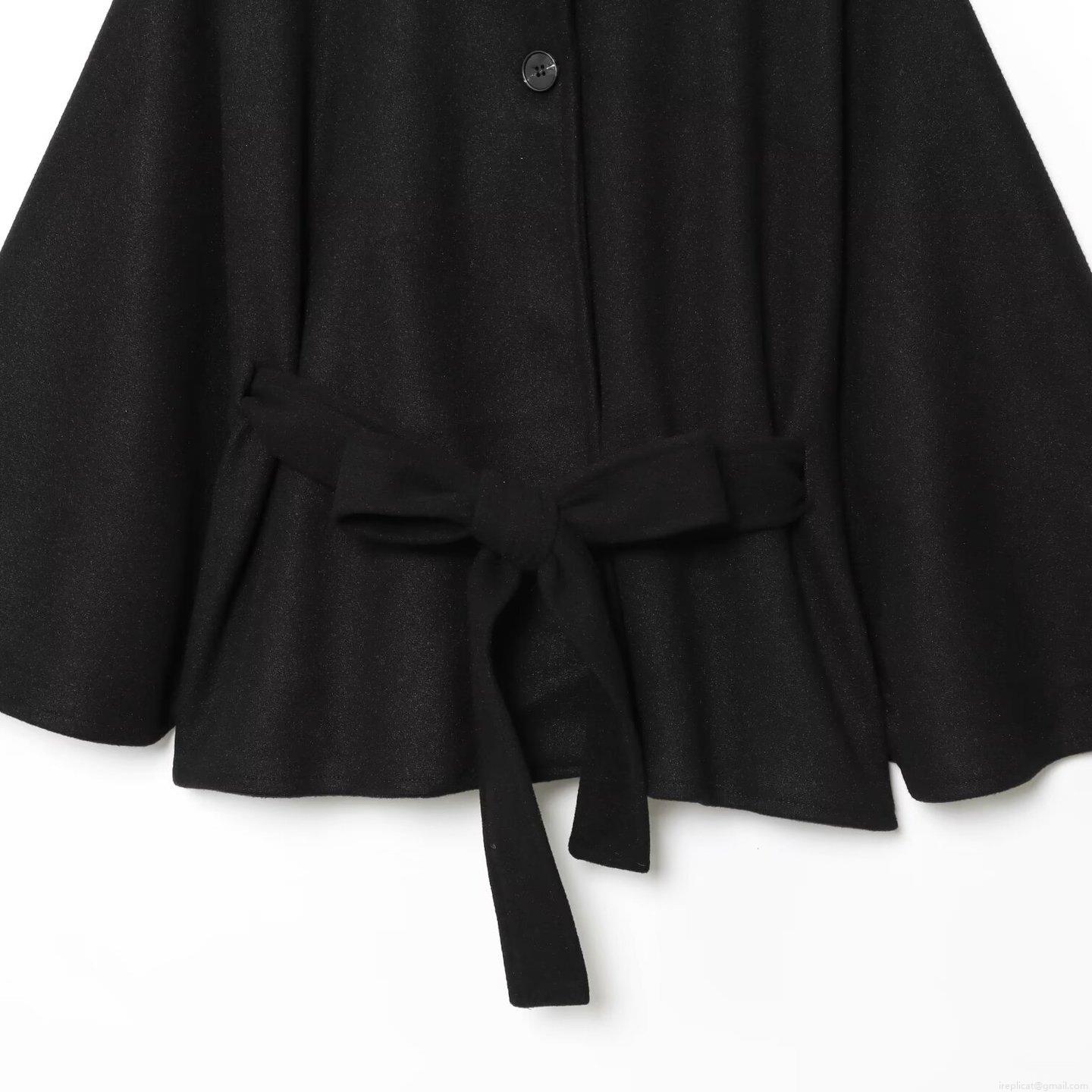 • Women Elegant High Neck Belted Cape Coat Fashion Solid Color Stand Collar Woolen Poncho Jacket With Button For Office Casual Party Autumn Winter