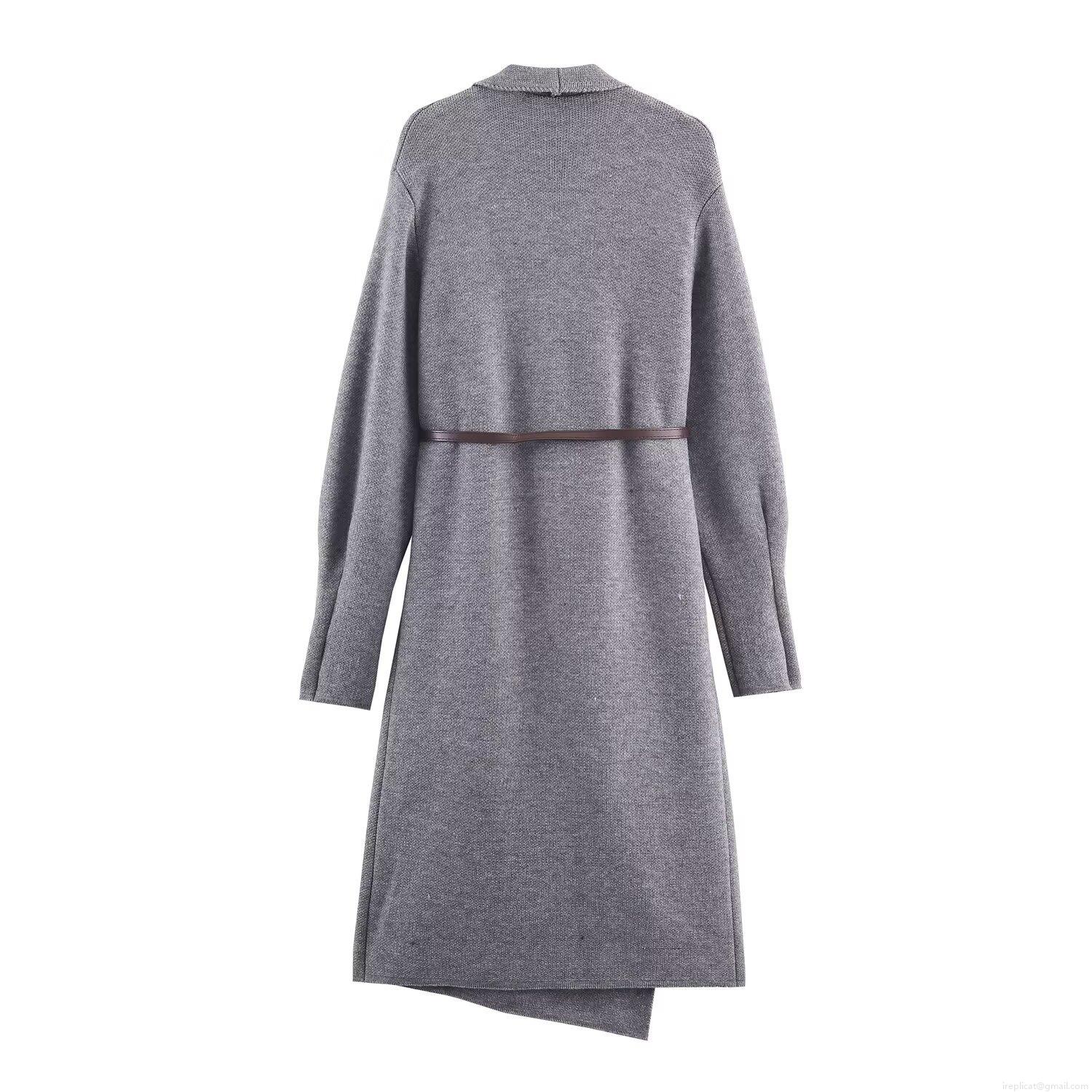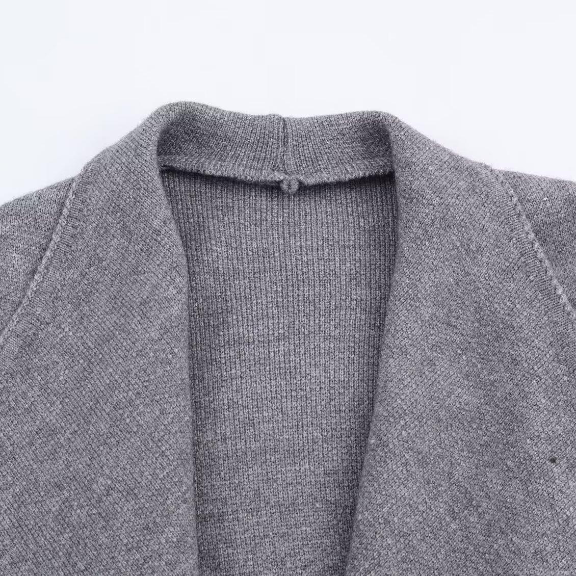 Women Elegant Long Knit Coat With Waist Belt Large Lapel Solid Color Polyester Knitted Cardigan Sweater Jacket For Fall Winter Daily Office Wear