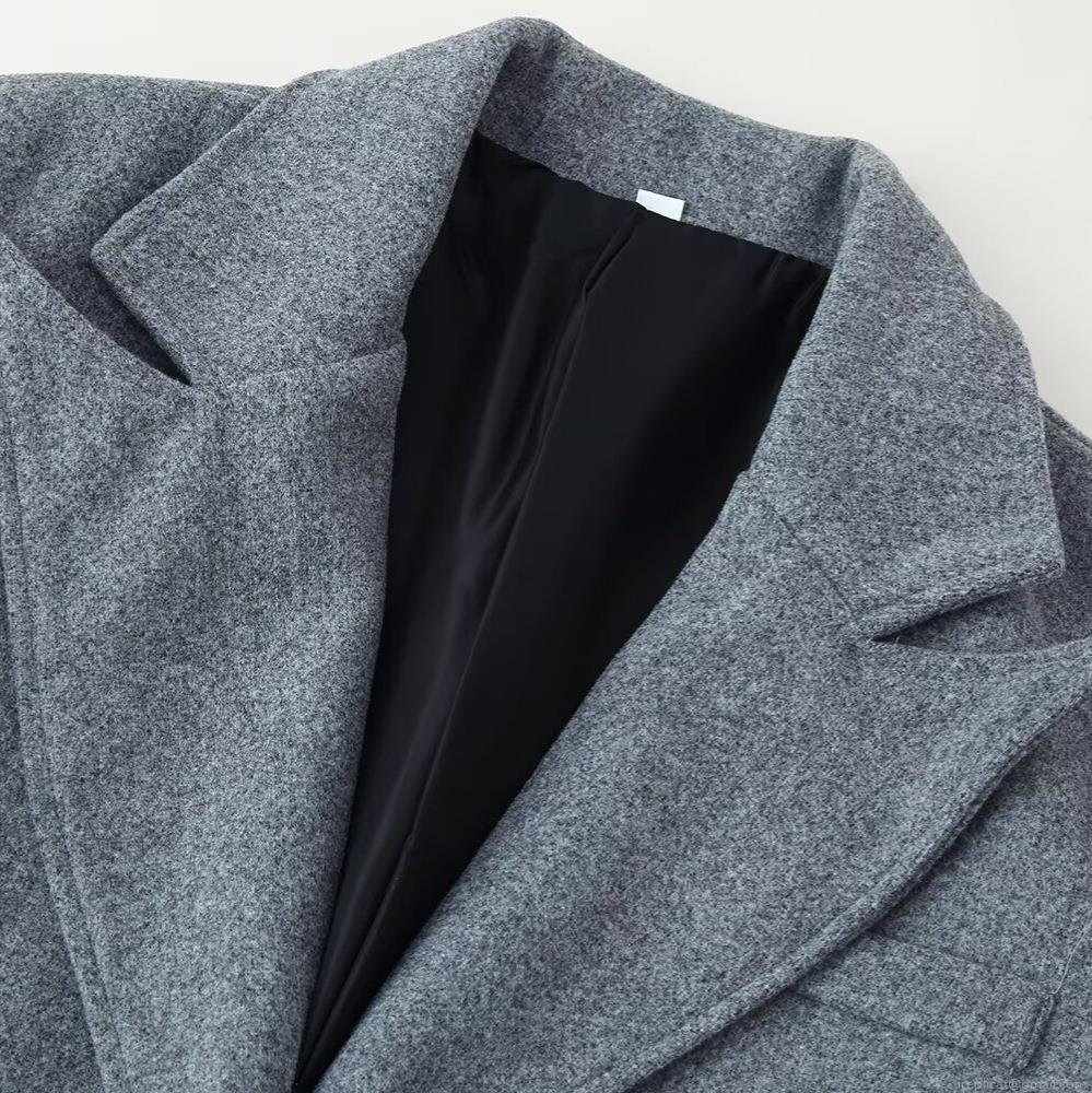 • Women Elegant Long Wool Blend Coat Notched Lapel Single Breasted Winter Trench Coat Slim Fit Solid Color Woolen Outerwear For Office Daily Commute Fashion Warm Overcoat