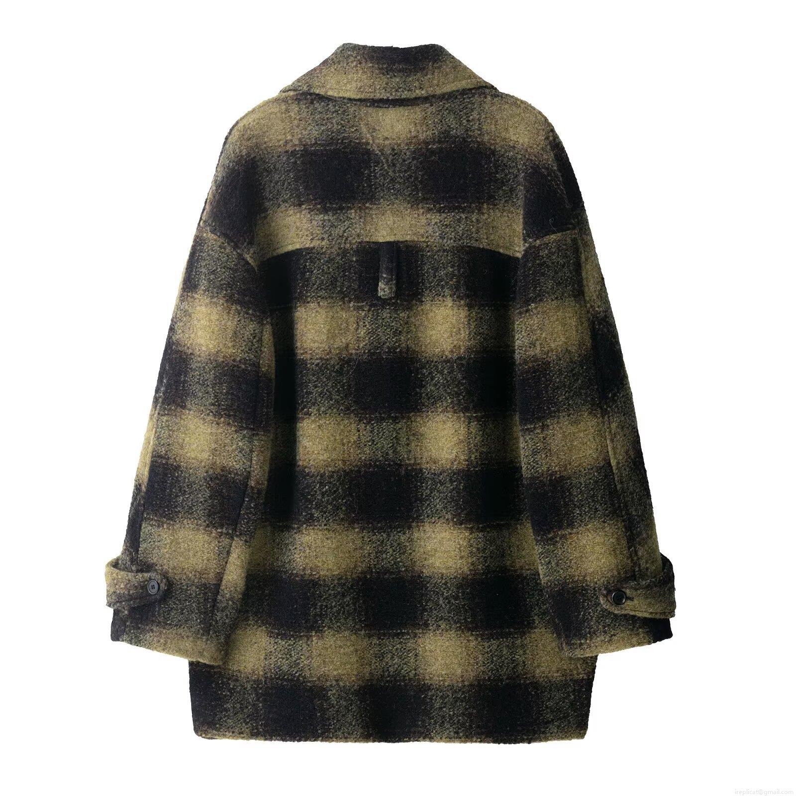 • Women Elegant Plaid Overcoat 100% Polyester Long Sleeve Checkered Woolen Texture Jacket For Autumn Winter Outdoor Daily Wear