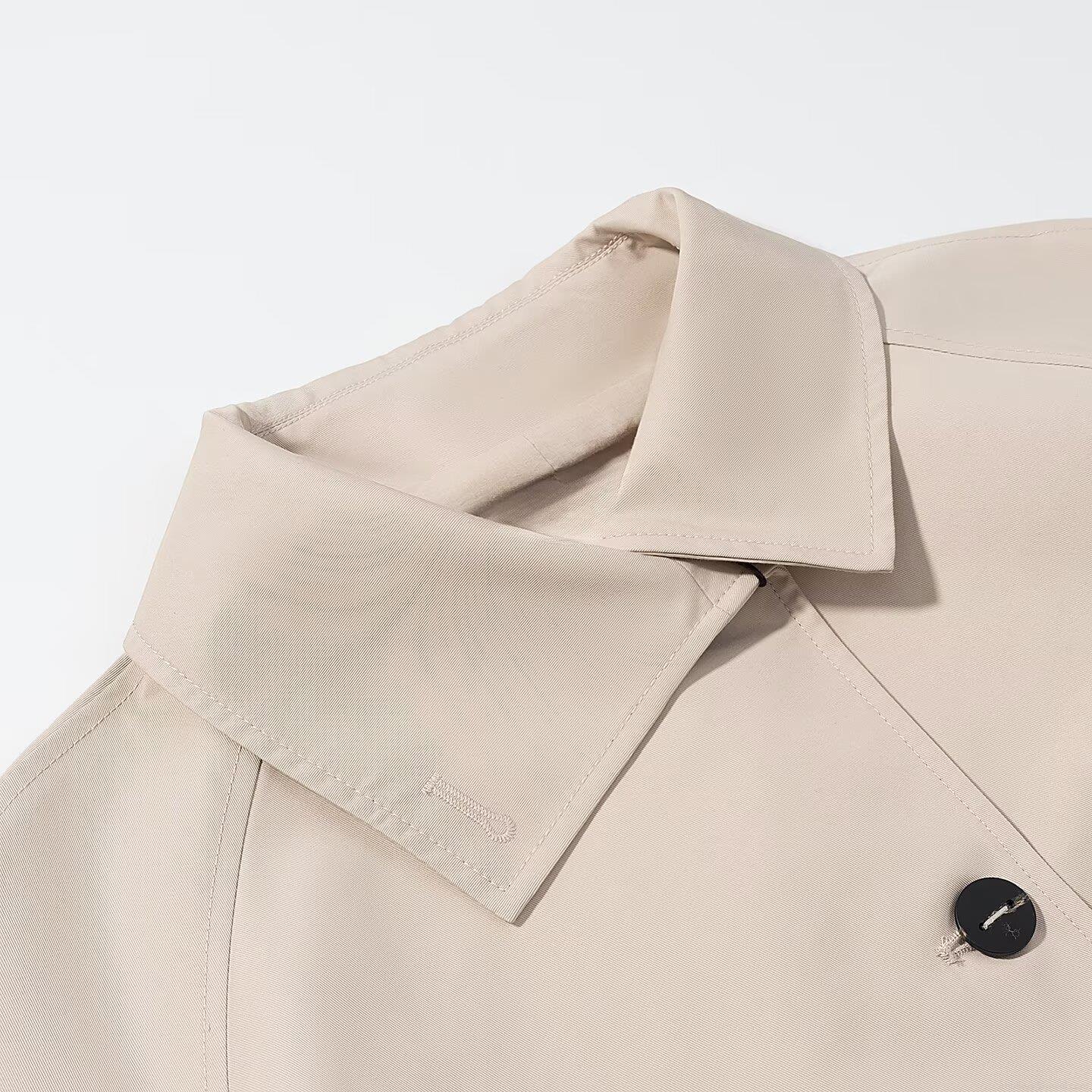 • Women Elegant Short Trench Coat Minimalist Single Breasted Lapel Crop Windbreaker Jacket With Pockets Solid Color Polyester Outwear For Daily Streetwear