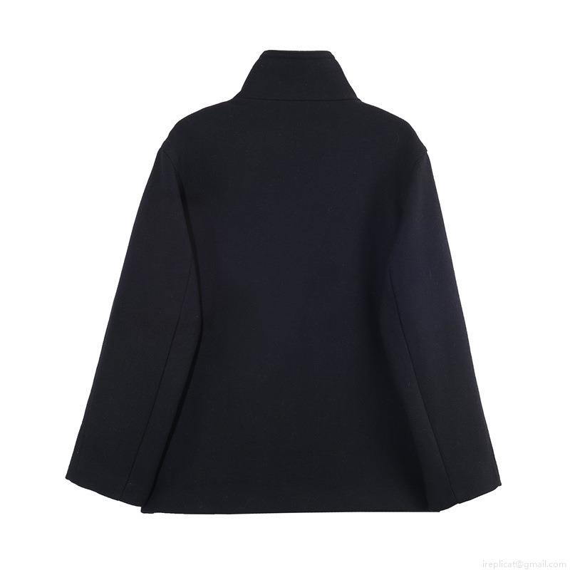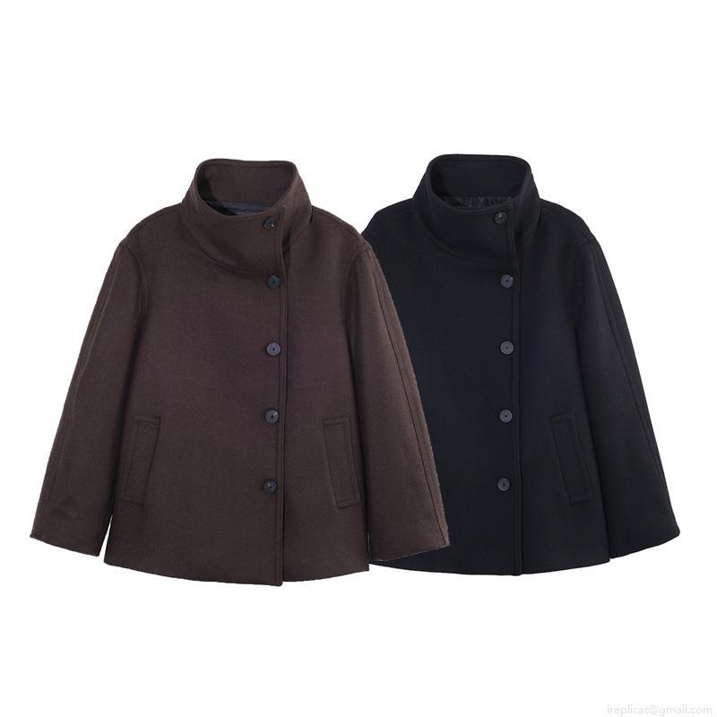 • Women Elegant Solid Color Woolen Coat Stand Collar Loose Fit Jacket With Pockets Single Breasted Outerwear For Office Casual Spring Autumn Winter