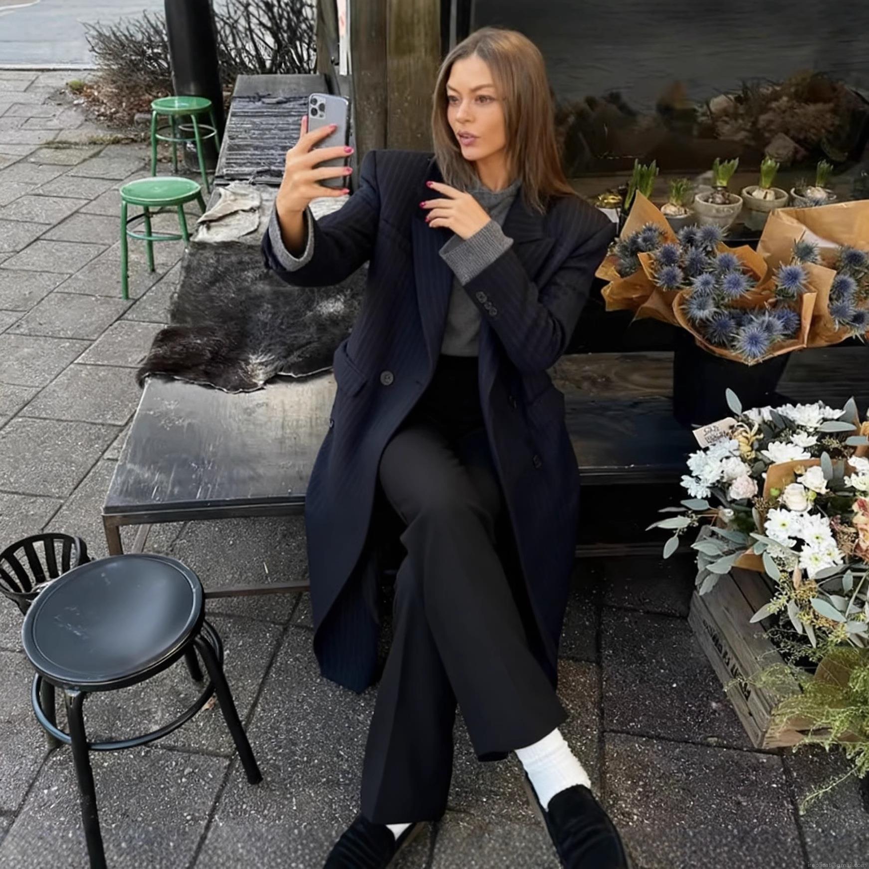 • Women Elegant Striped Long Overcoat Polyester Blend Double Breasted Lapel Trench Coat Slim Fit Casual Office Outerwear for Ladies Autumn Winter Fashion