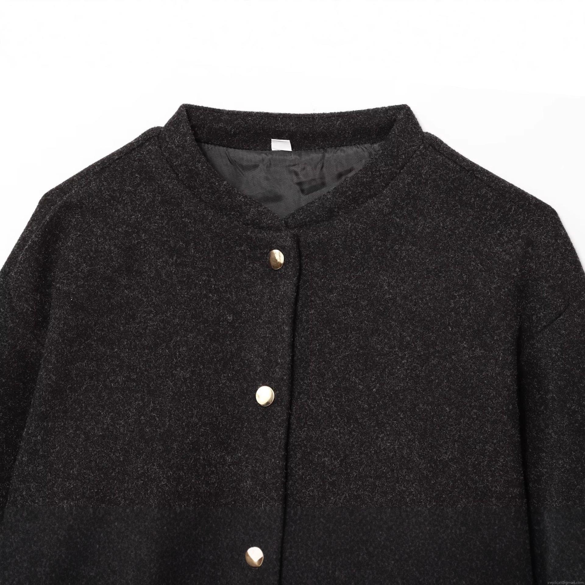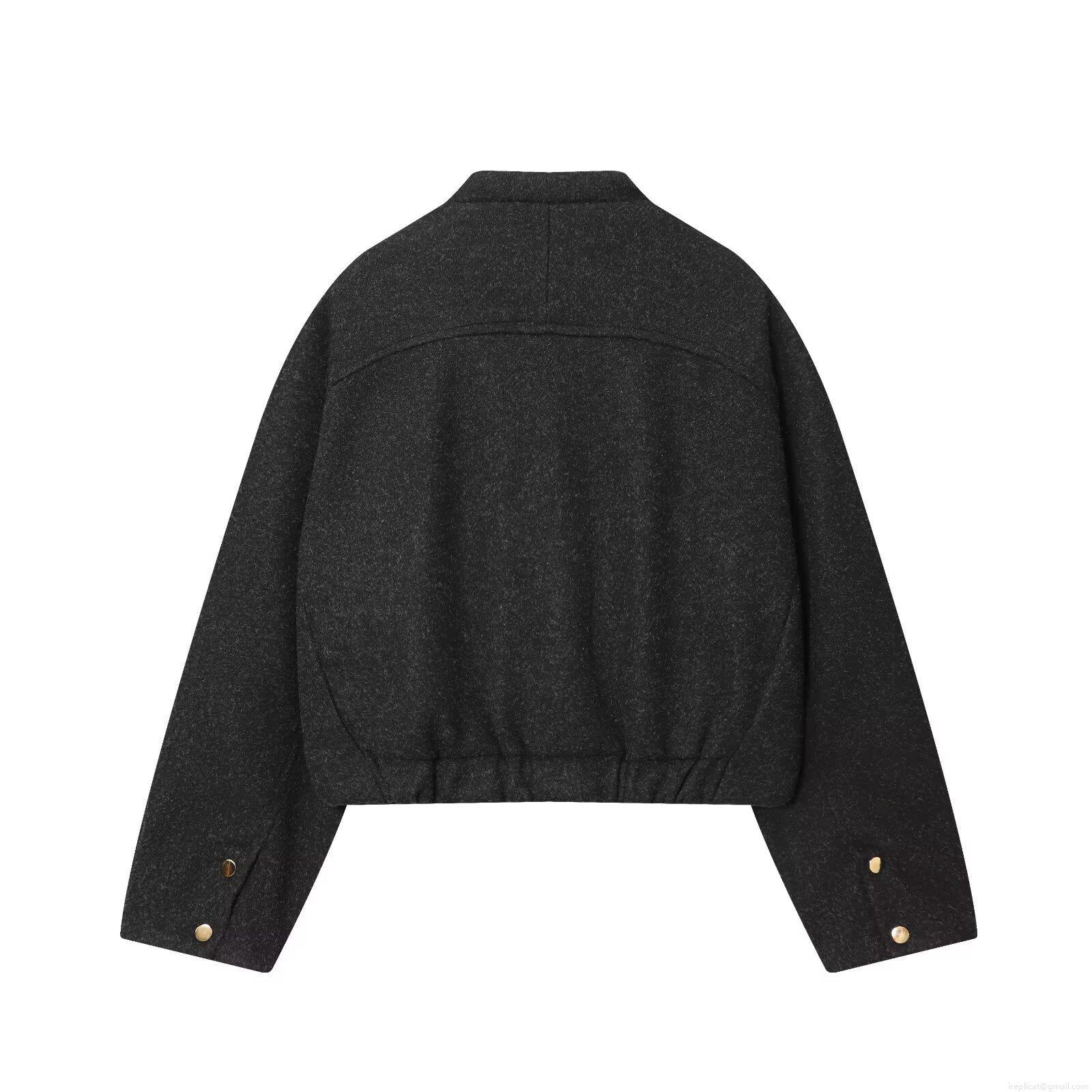 • Women Elegant Tweed Texture Bomber Jacket Coat Loose Fit Solid Color Short Outwear With Gold Buttons Round Neck Long Sleeve Casual Streetwear Jacket For Women
