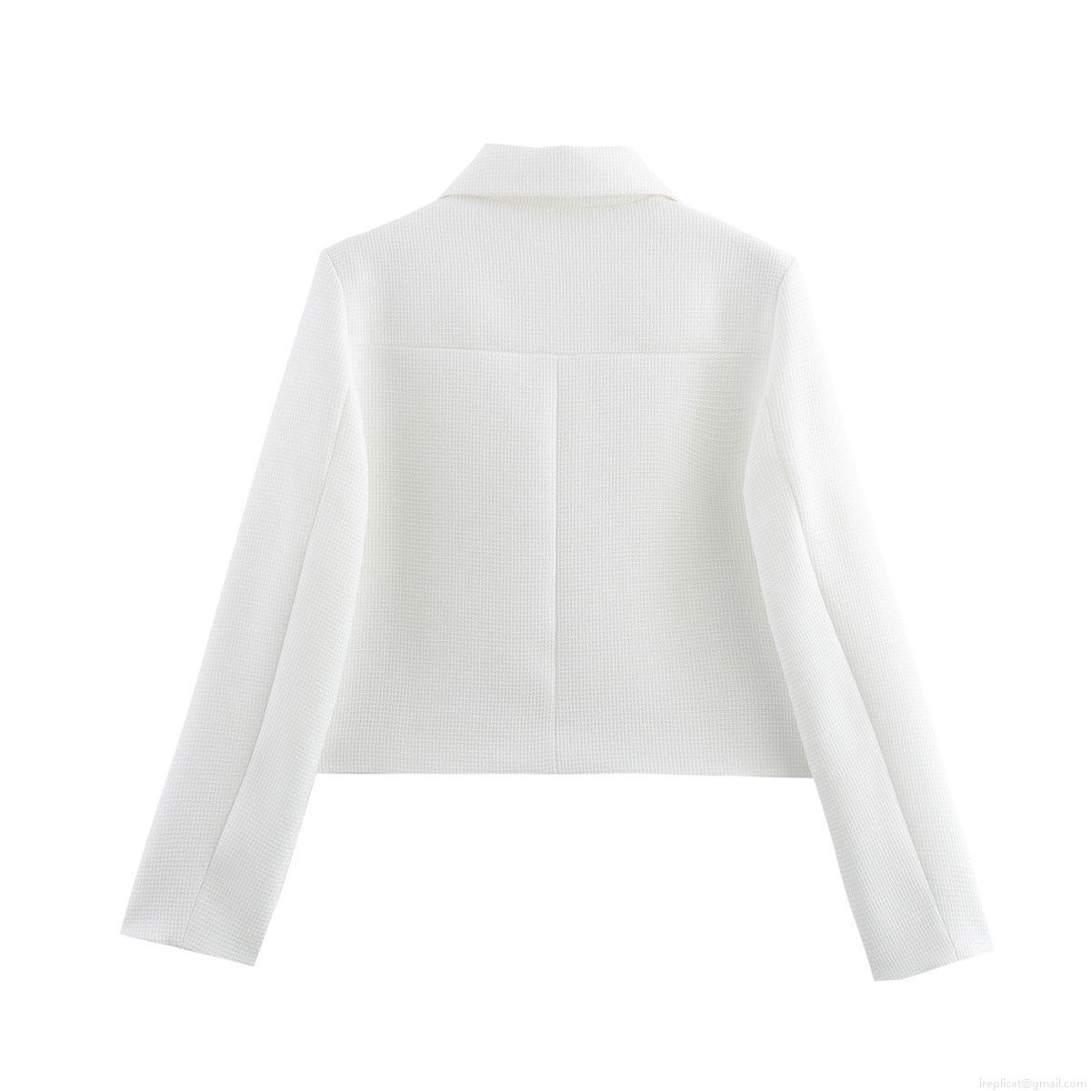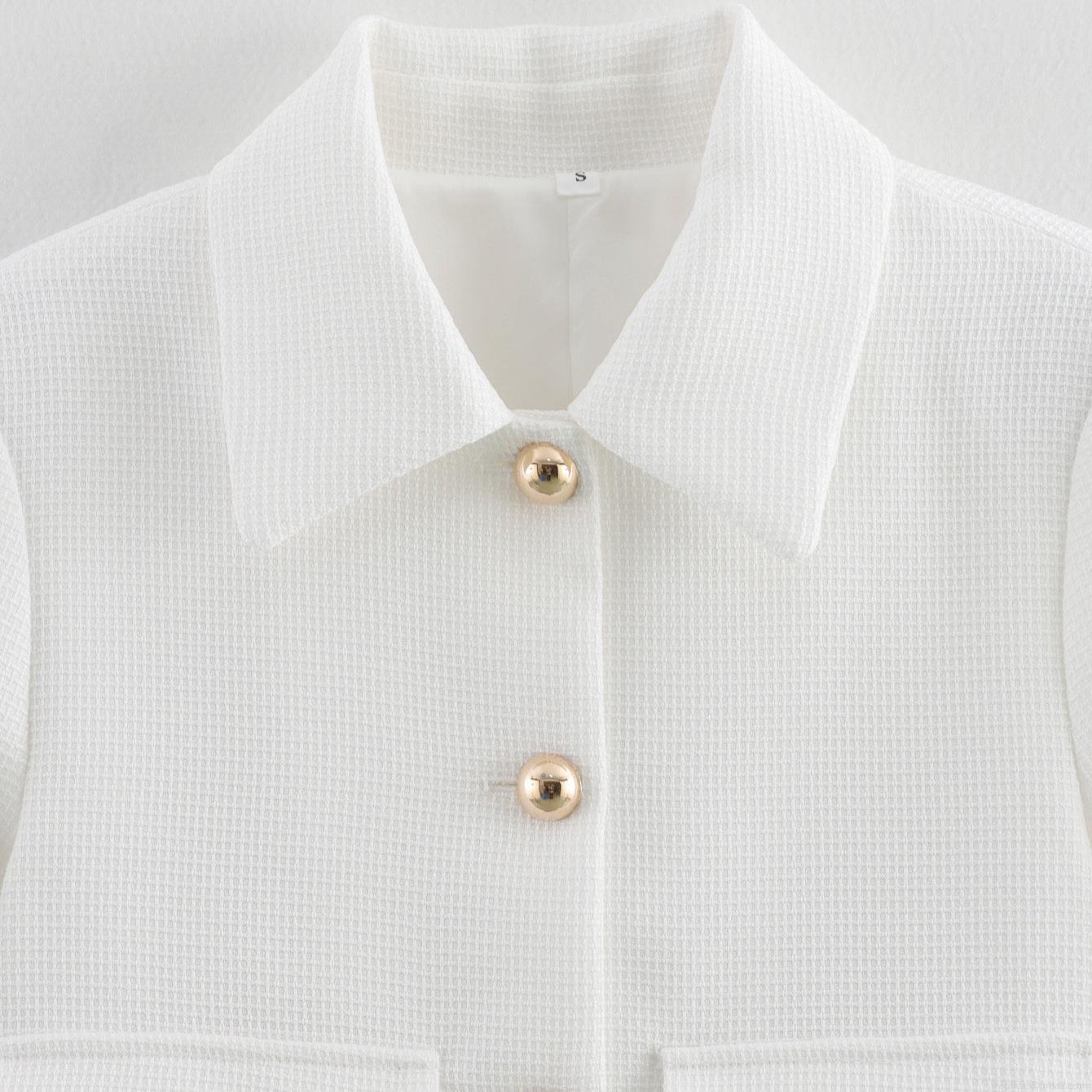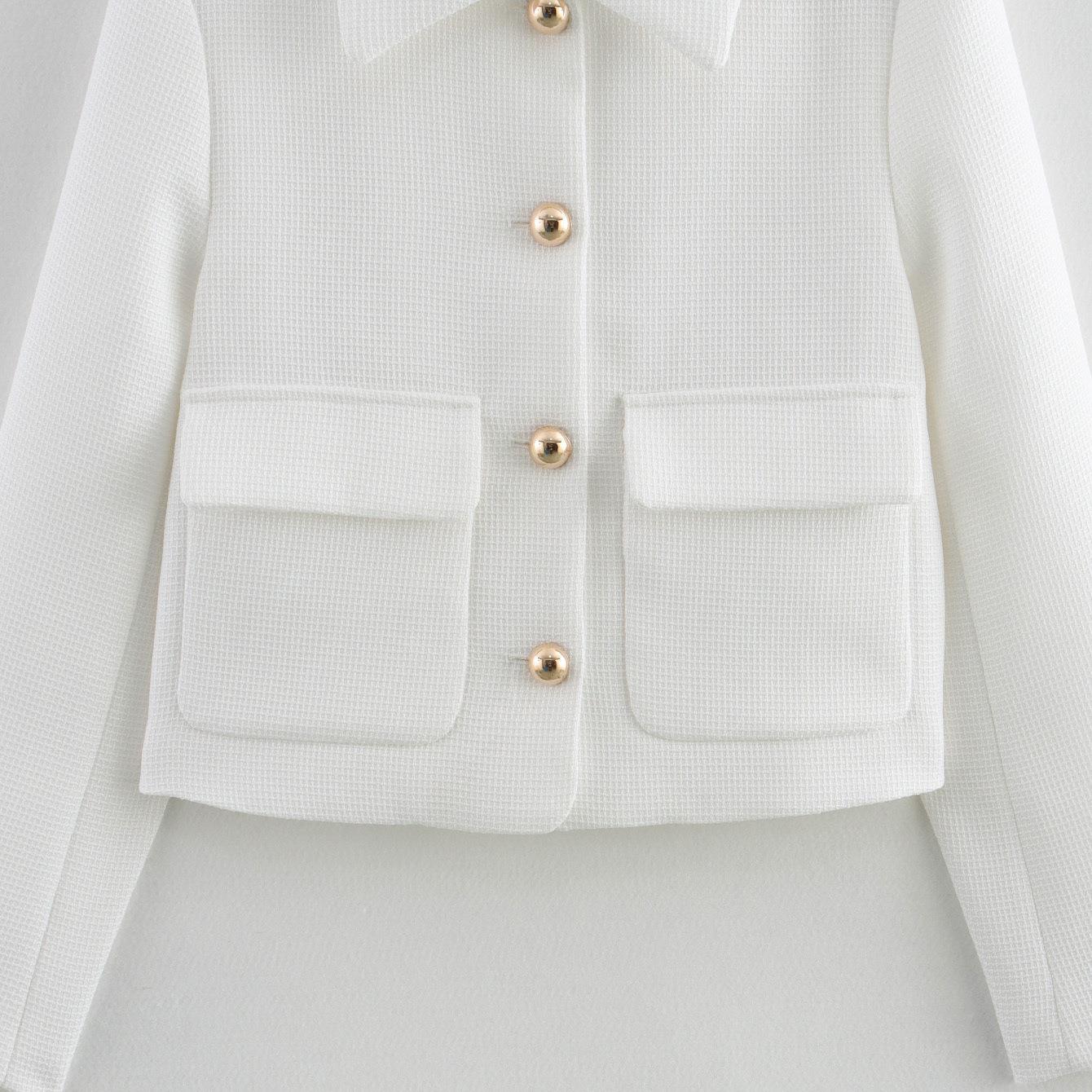 • Women Elegant White Tweed Jacket Chanel Style Single Breasted Gold Buttons Long Sleeve Short Outerwear For Commute Party Ladies Fashion Crop Coat
