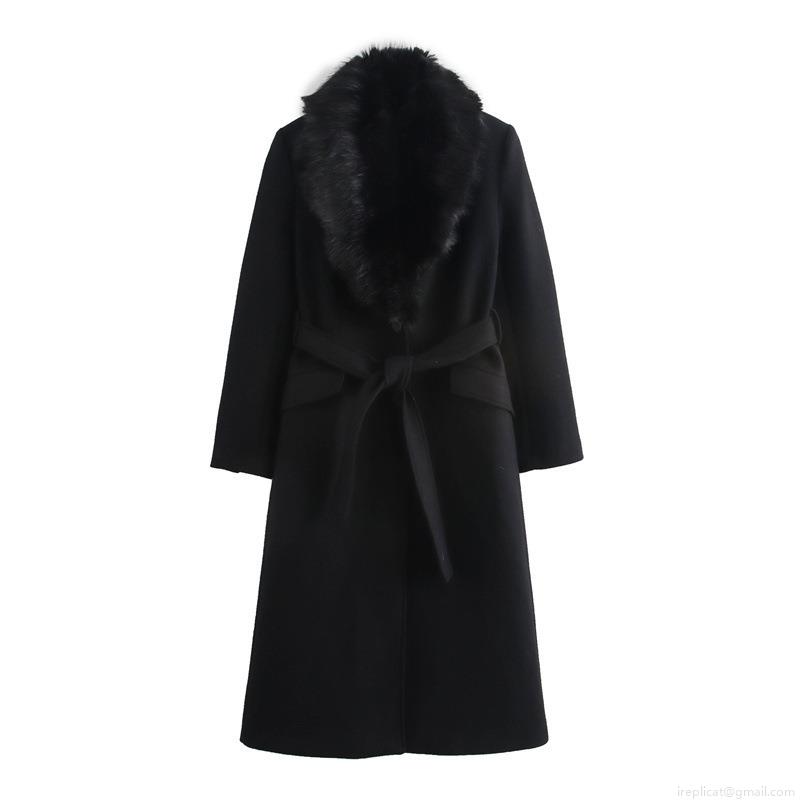 • Women Elegant Wool Blend Long Coat With Faux Fur Collar Belted Waist Slim Fit Single Breasted Warm Winter Jacket For Lady Office Daily Wear