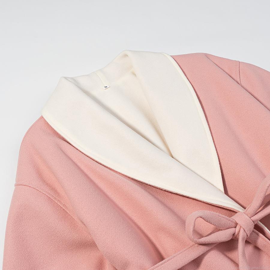 • Women Elegant Woolen Coat Contrast Color Shawl Collar Faux Fur Cuff Tie Waist Fleece Lined Winter Warm Jacket Slim Outerwear For Women Ladies