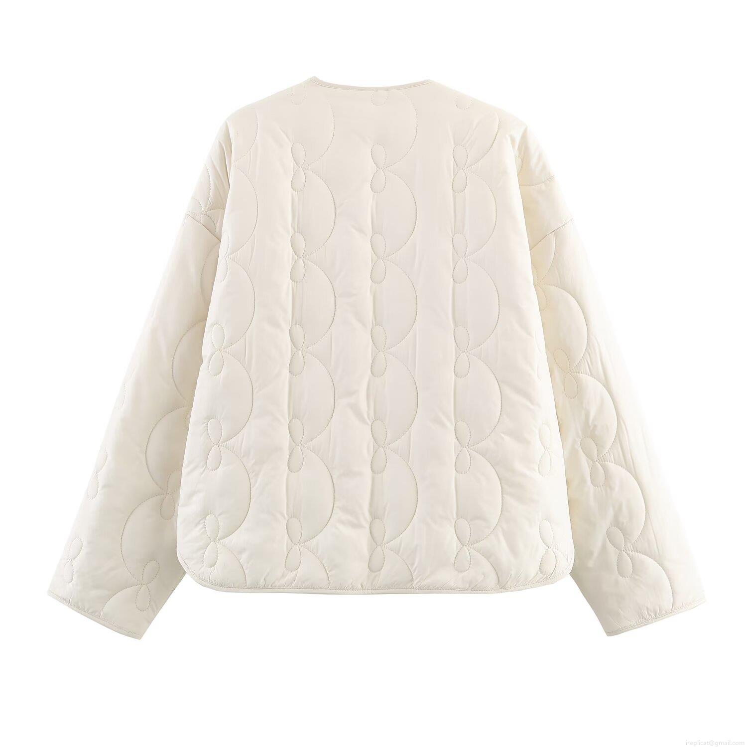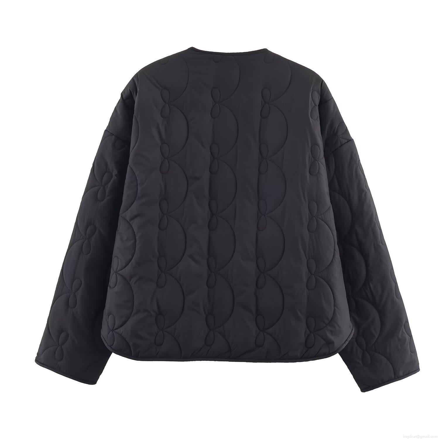 • Women Fashion Bowknot Quilted Jacket Lightweight Warm Round Neck Single Breasted Outerwear Soft Polyester Padded Short Coat For Women Elegant Casual Streetwear Winter Autumn