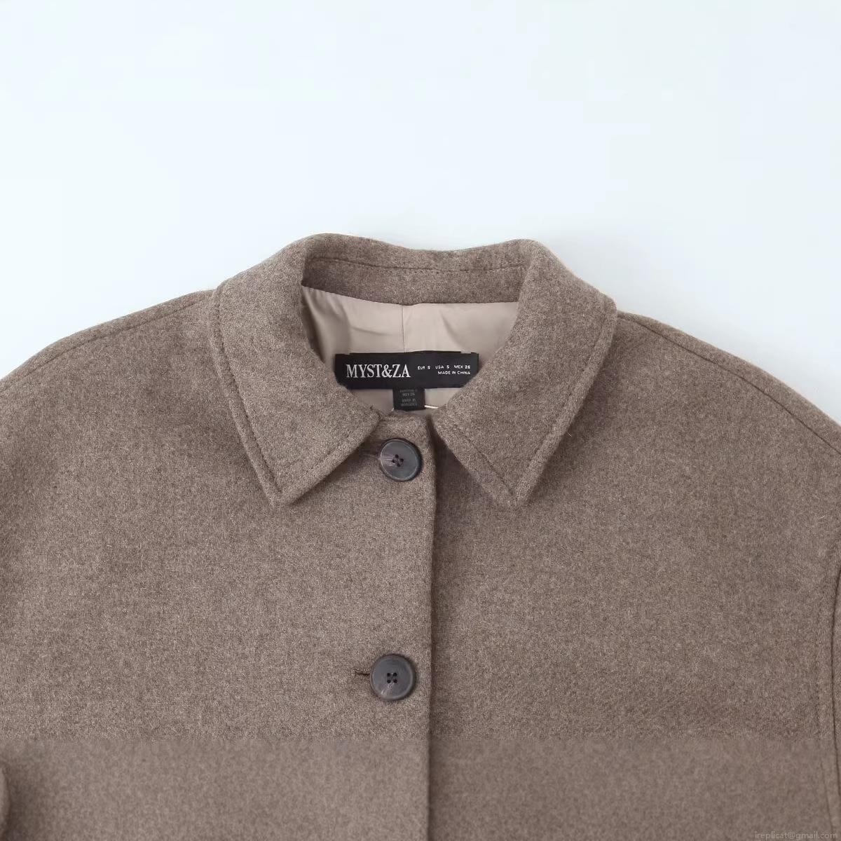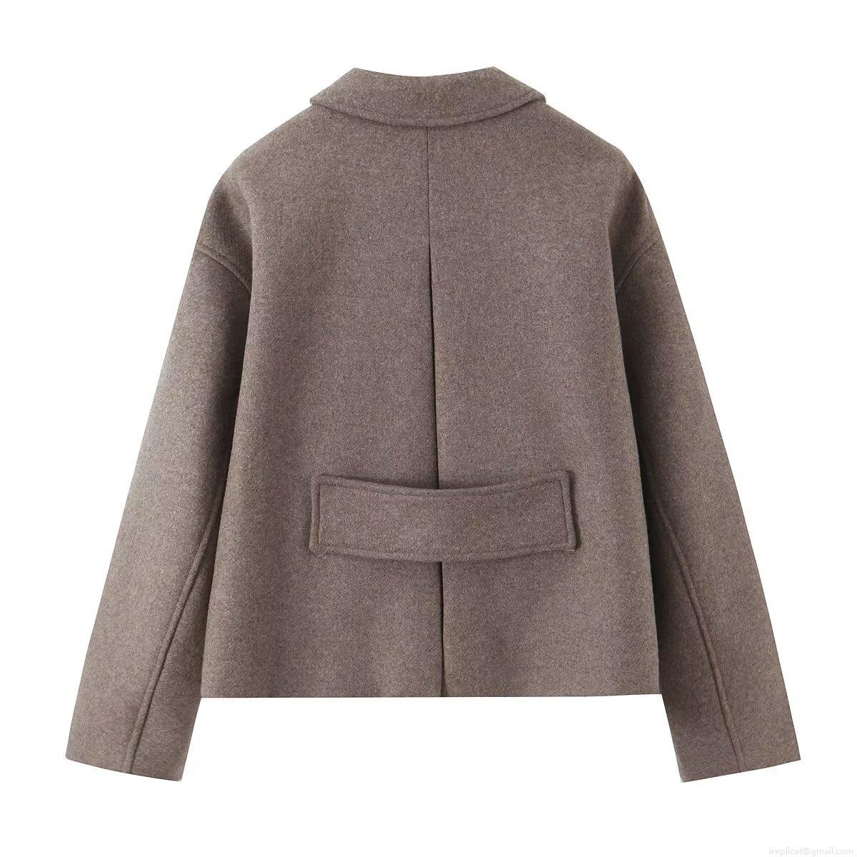 • Women Fashion Camel Polyester Wool Like Short Coat Single Breasted Notch Lapel Loose Fit Solid Color Casual Autumn Winter Outerwear Jacket