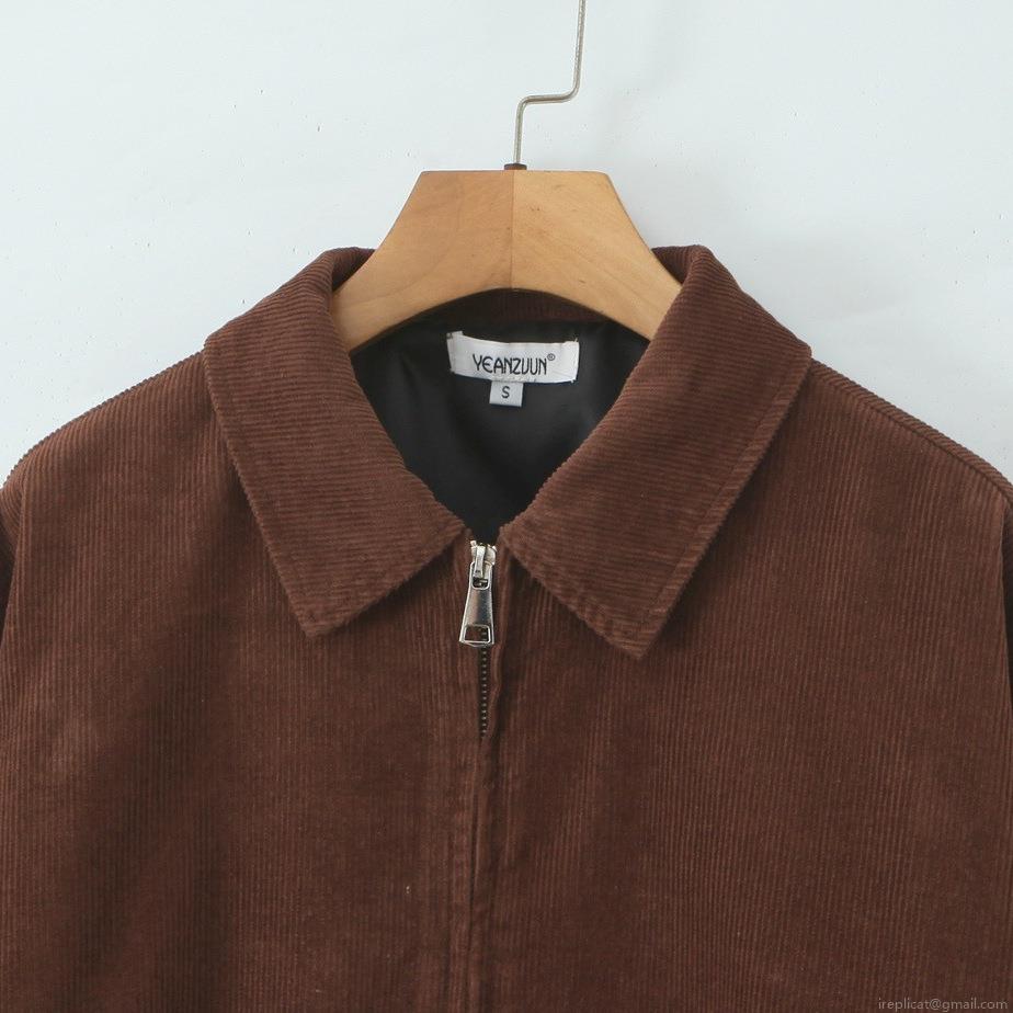 • Women Fashion Casual Corduroy Polyester Jacket Solid Color Long Sleeve Lapel Zipper Short Outerwear Coat For Autumn Winter Ladies Daily Wear