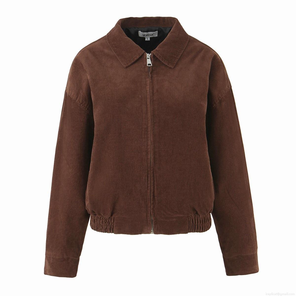 Women Fashion Casual Corduroy Polyester Jacket Solid Color Long Sleeve Lapel Zipper Short Outerwear Coat For Autumn Winter Ladies Daily Wear
