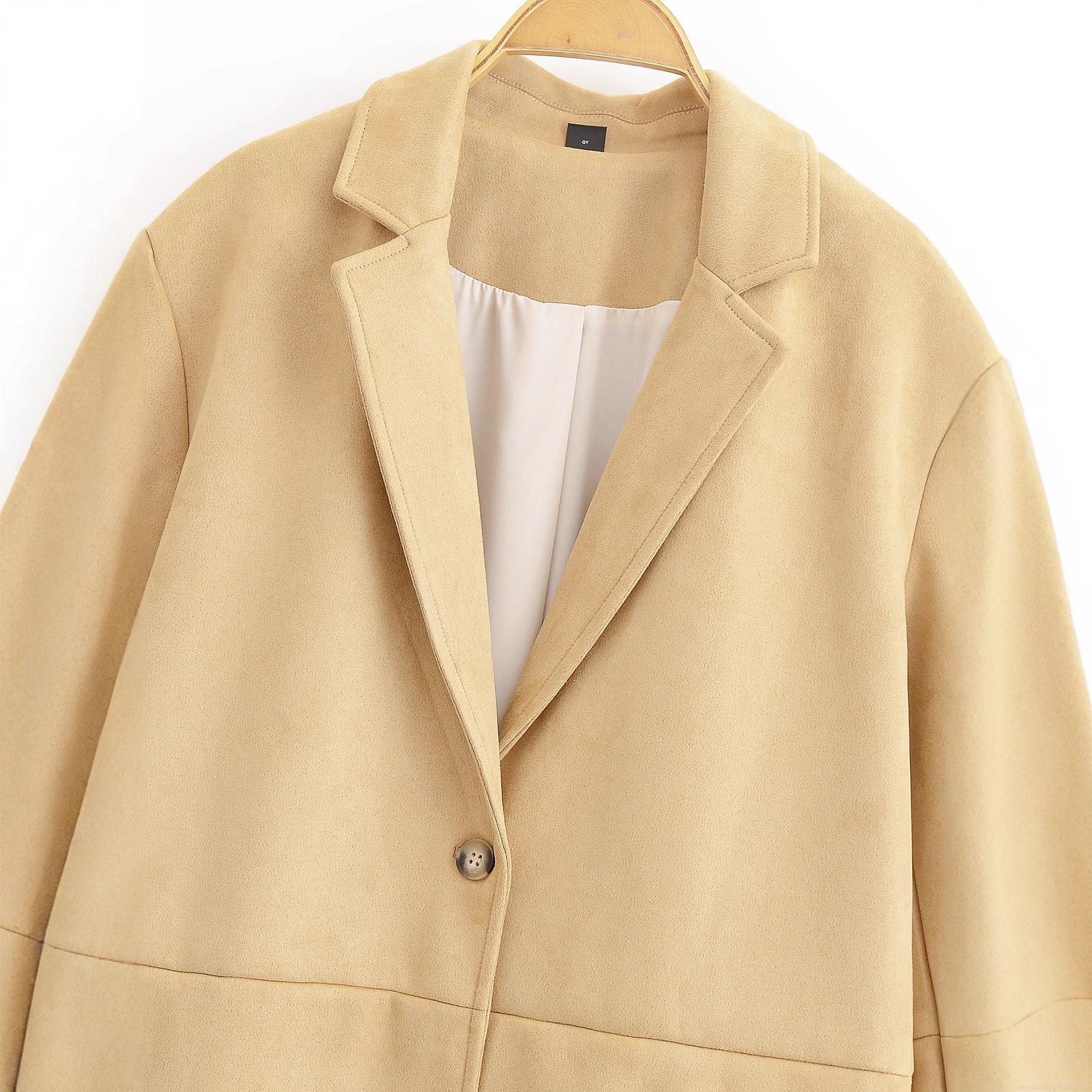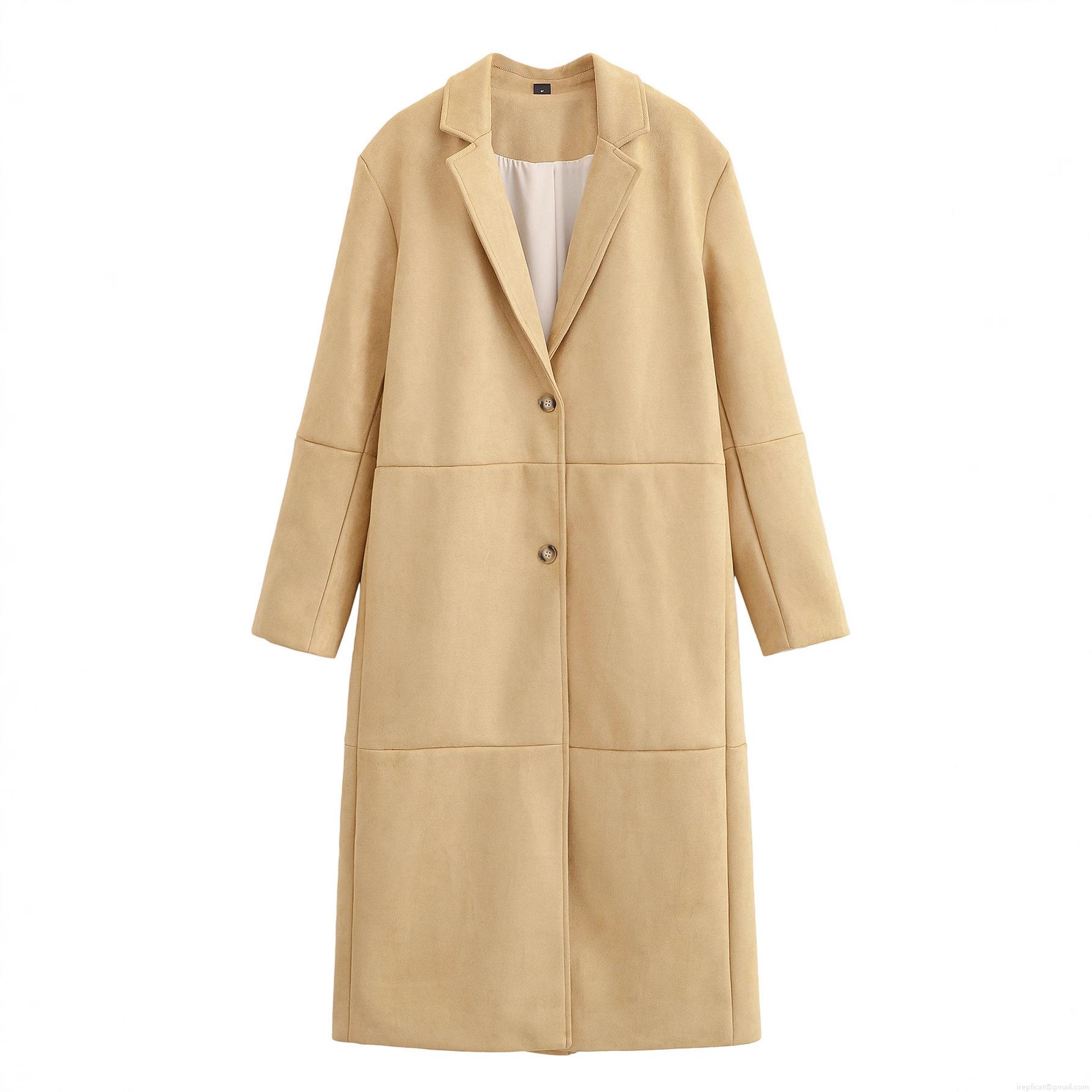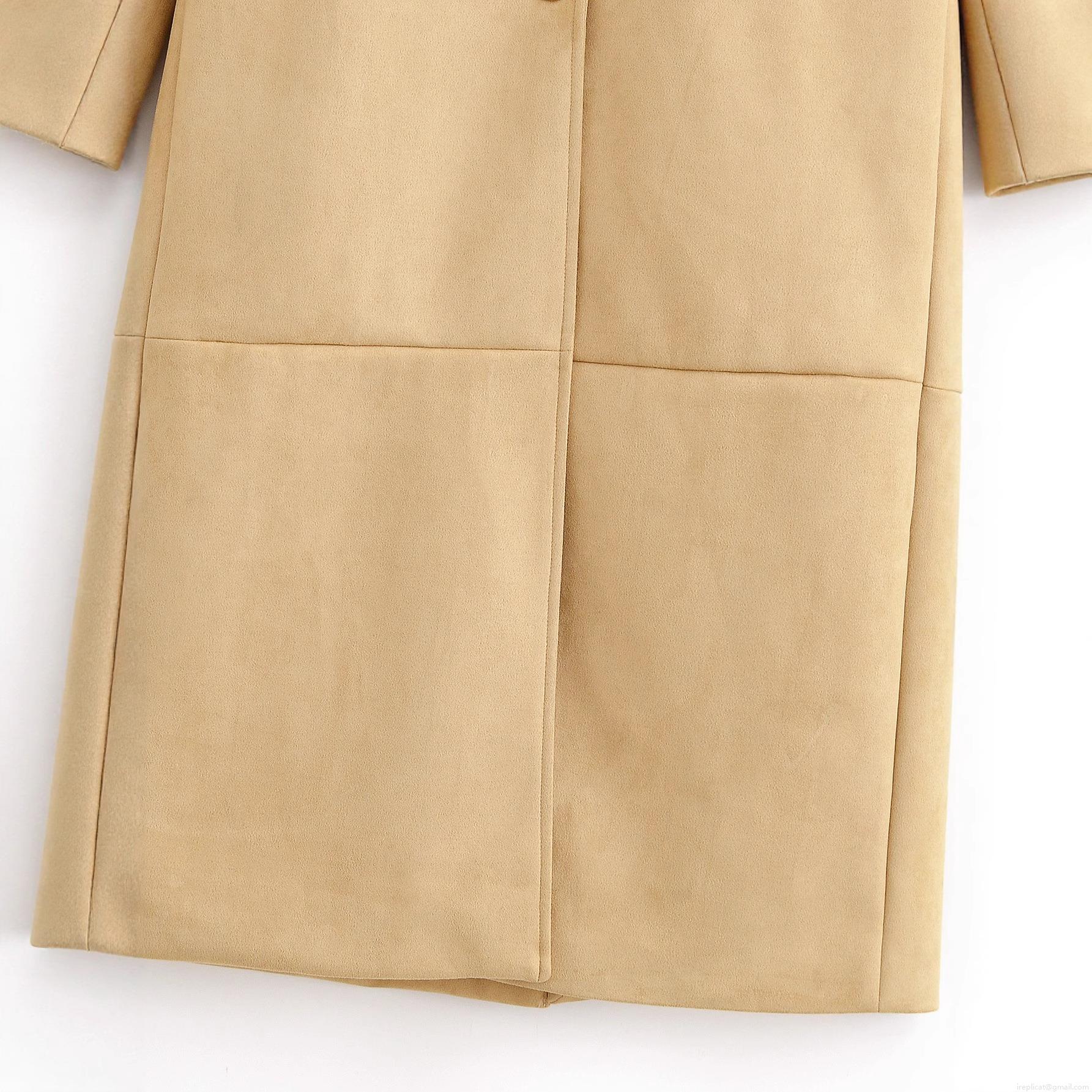 • Women Fashion Casual Faux Suede Long Coat Elegant Lapel Double Button Panelled Outerwear Jacket For Autumn Winter Women