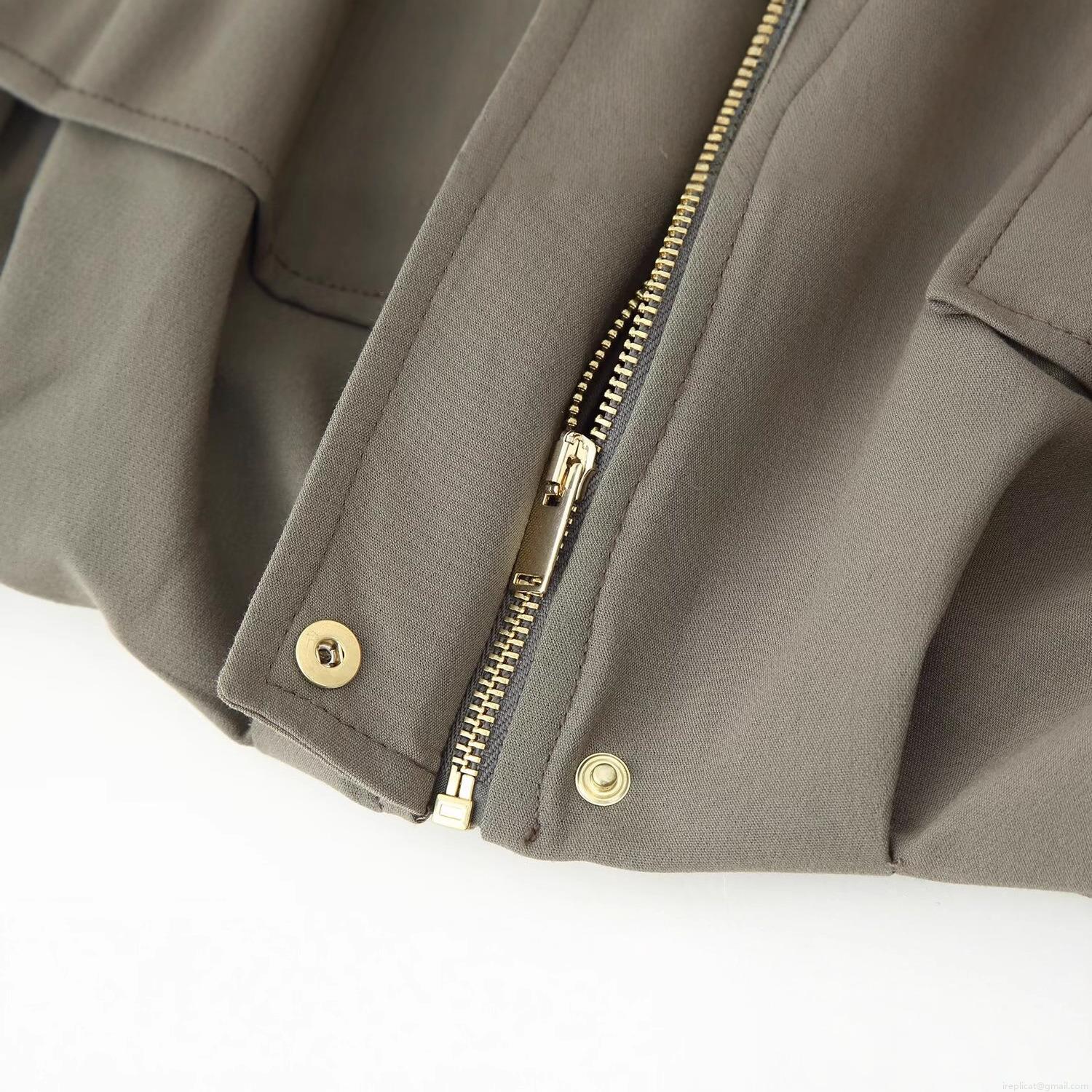 Solid Color, Exposed Wiring, Metal Zipper, Pleated Hem, Double Large Patch Pockets
