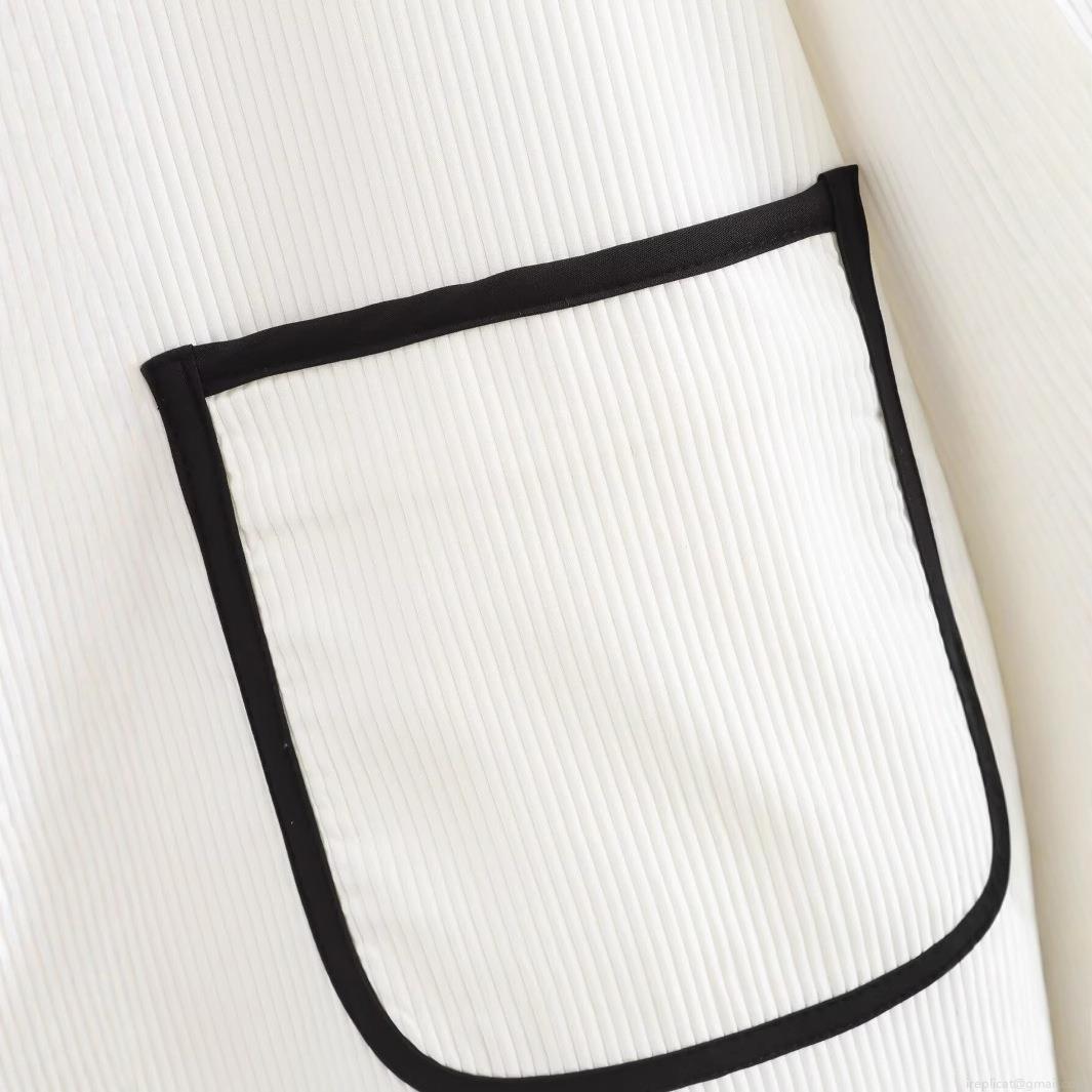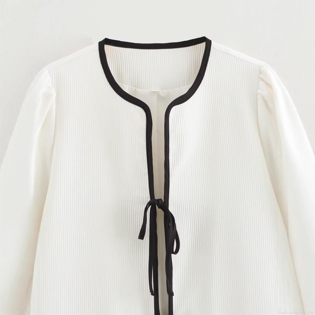• Women Fashion Contrast Trim Ribbed Cardigan Jacket Elegant Round Neck Tie-up Long Sleeve Outerwear With Pockets Solid White Black Trim Top For Casual Party Dating Lady