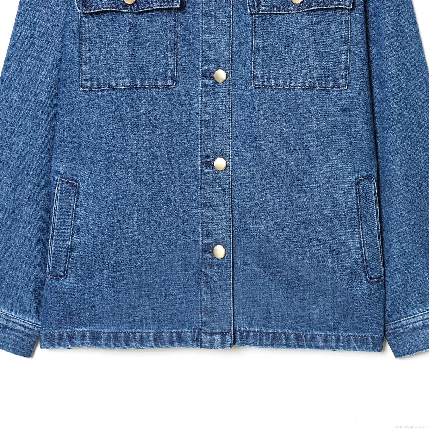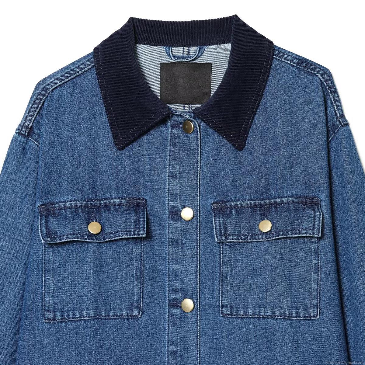 • Women Fashion Cotton Denim Jacket With Corduroy Collar Long Sleeve Button Down Washed Denim Coat For Winter Casual Style Ladies Outerwear With Pockets