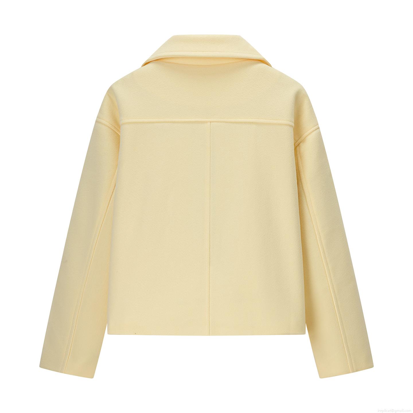 • Women Fashion Double Breasted Short Woolen Coat Casual Solid Color Lapel Long Sleeve Jacket Elegant Outerwear For Autumn Winter Ladies