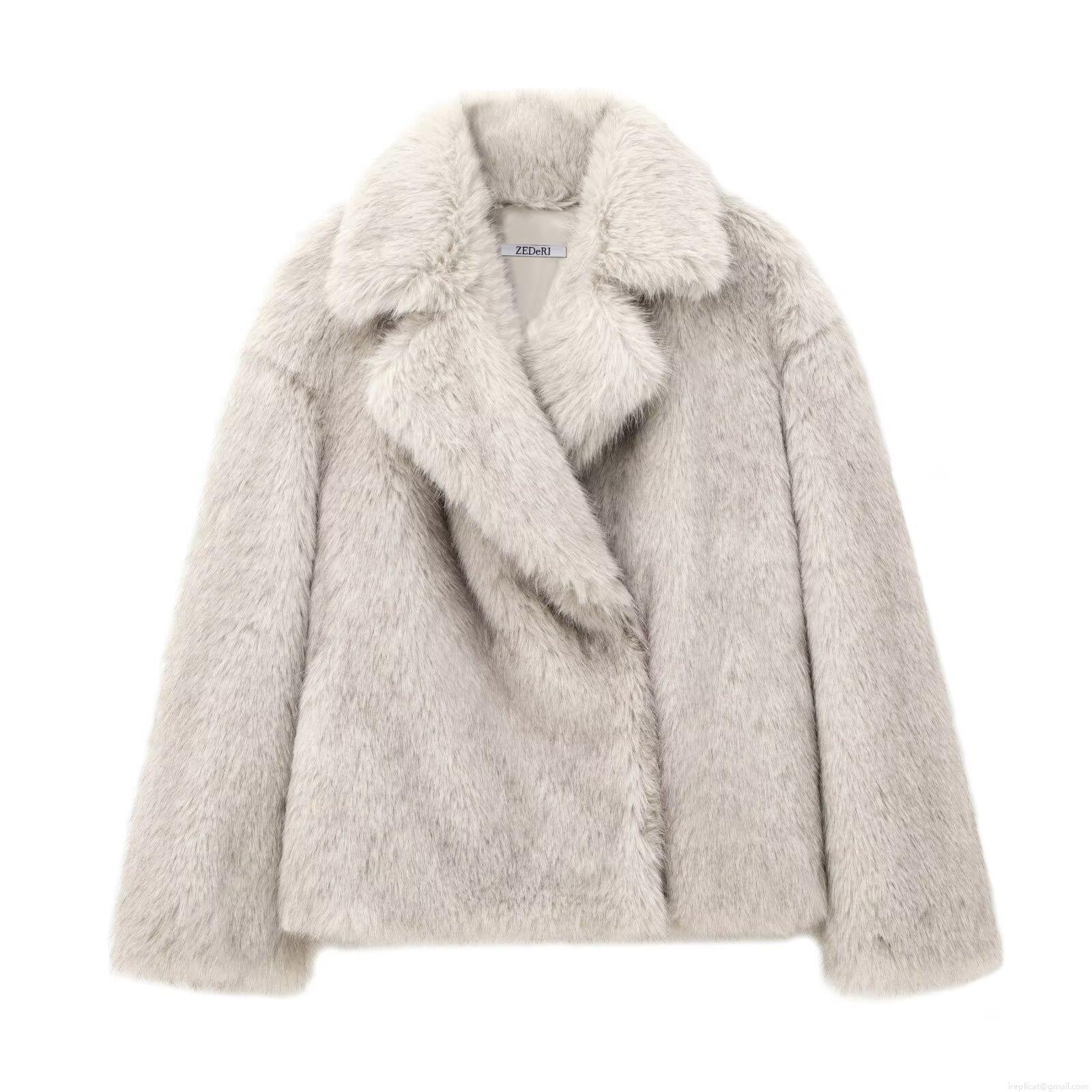 • Women Fashion Faux Fur Coat Autumn Winter Elegant Long Sleeve Lapel Jacket Warm Soft Polyester Outerwear For Party Streetwear Ladies