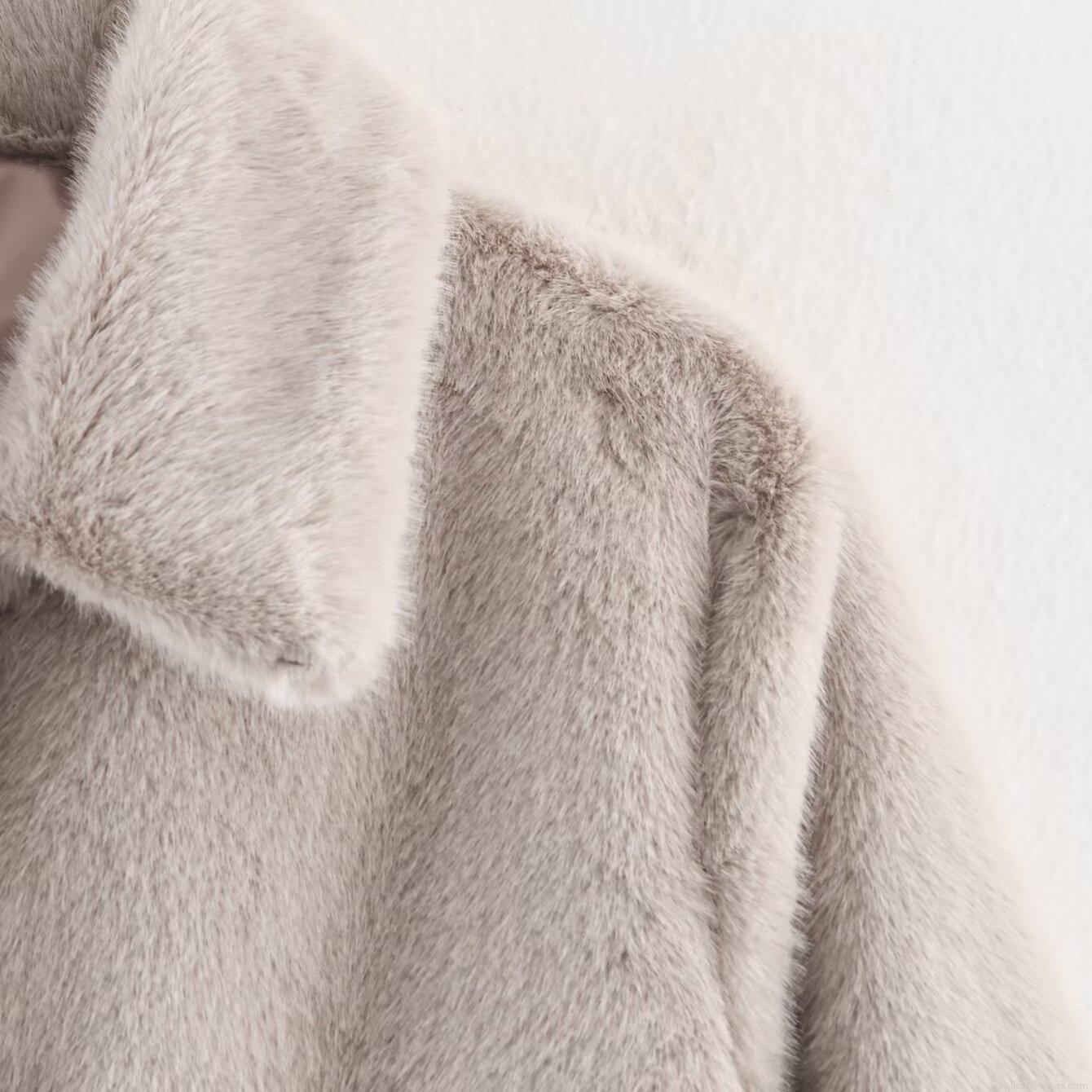 • Women Fashion Faux Fur Coat Lapel Collar Long Sleeve Polyester Peluche Jacket Casual Warm Short Winter Outerwear With Pockets For Ladies