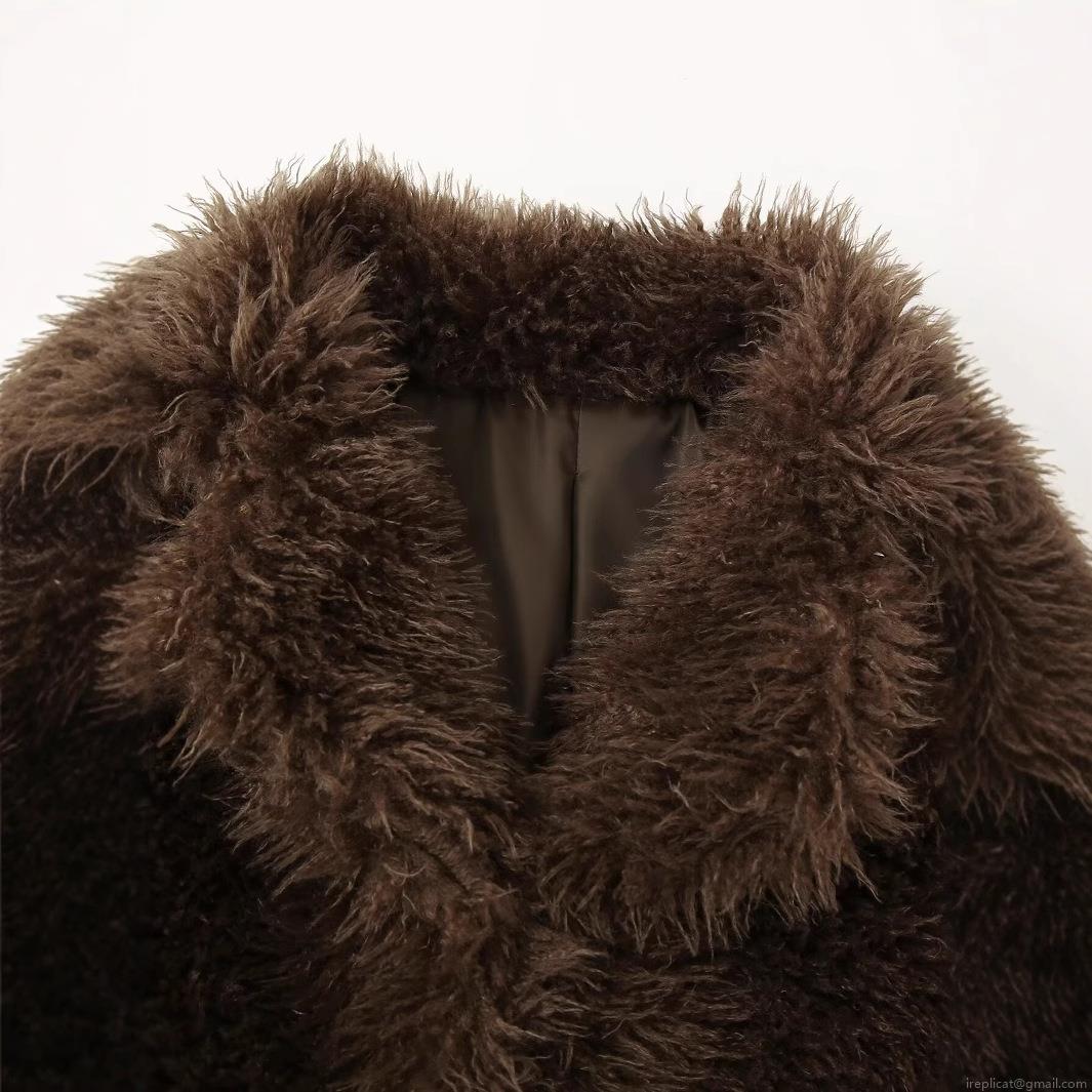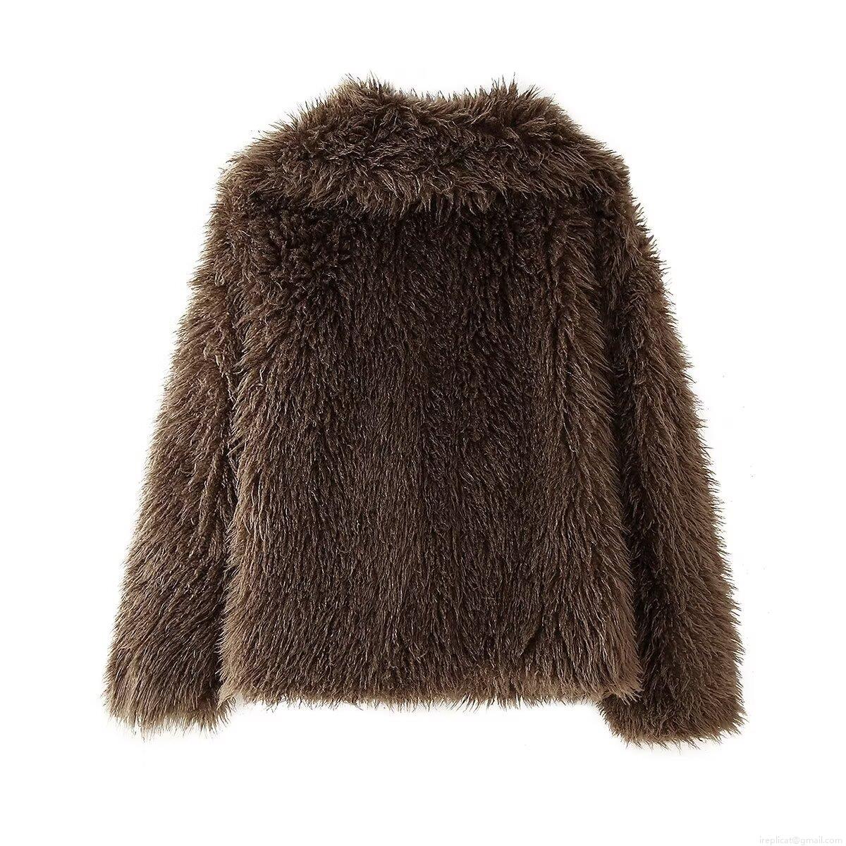 • Women Fashion Faux Fur Effect Long Sleeve Woolen Coat 2025 Spring Autumn Lapel Warm Plush Short Outerwear Polyester Faux Fur Jacket For Women