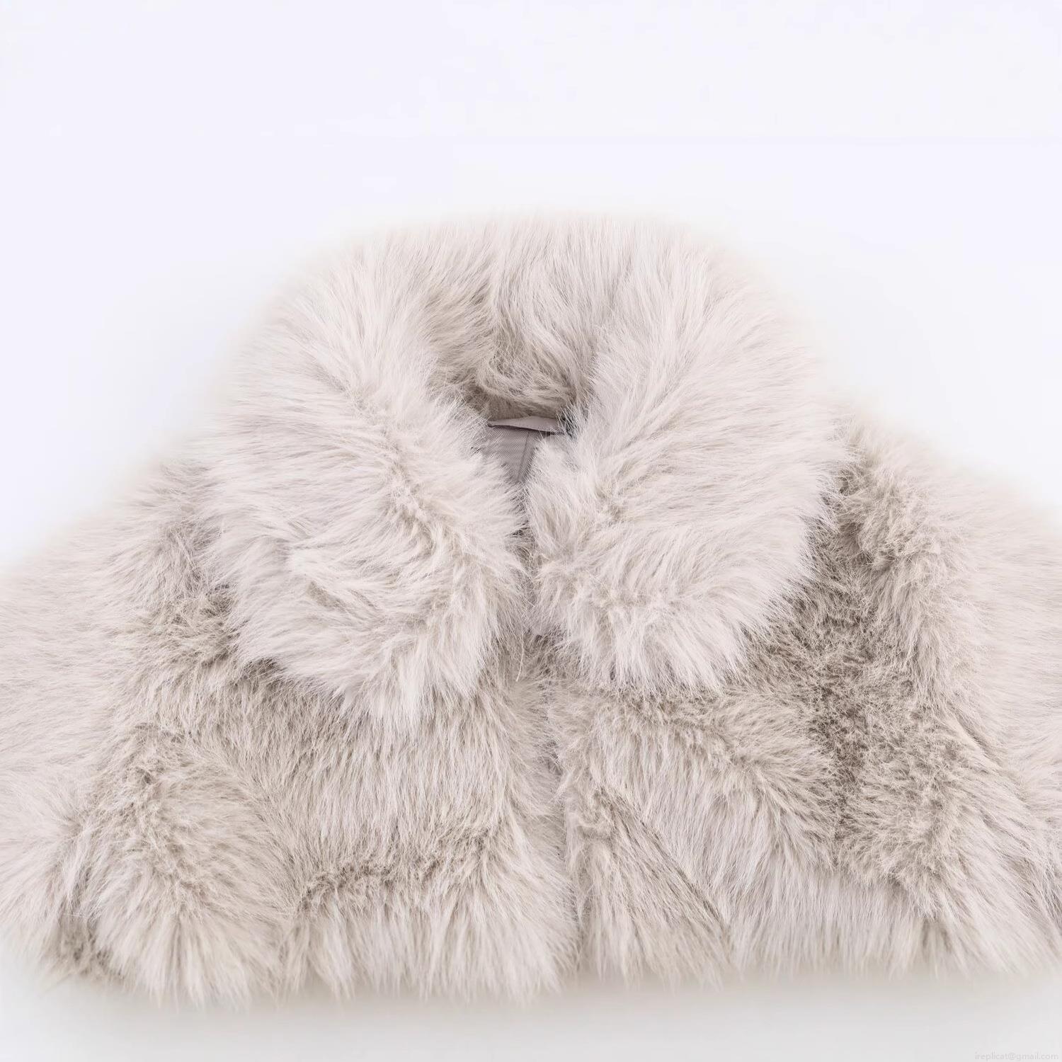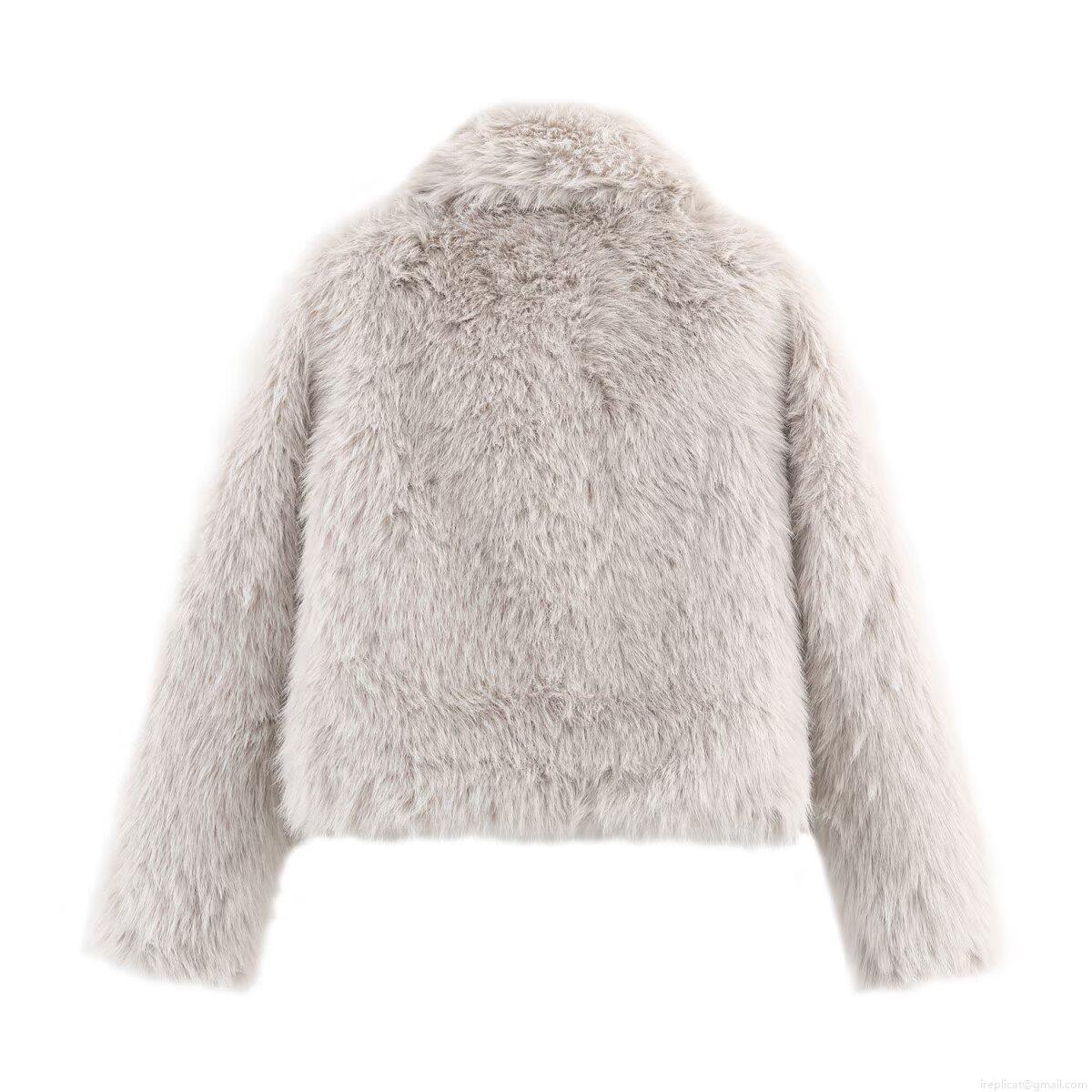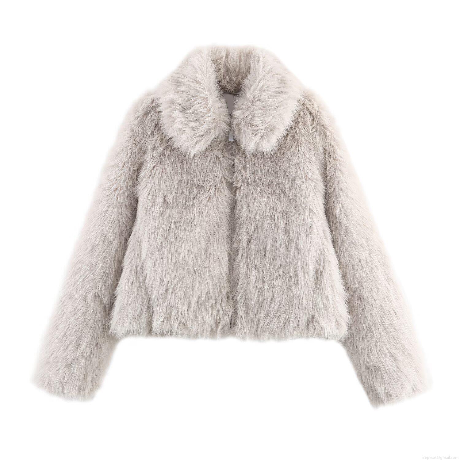 • Women Fashion Faux Fur Jacket Solid Color Zipper Front Short Coat Elegant Lapel Collar Outerwear Long Sleeve Polyester Top For Autumn Winter