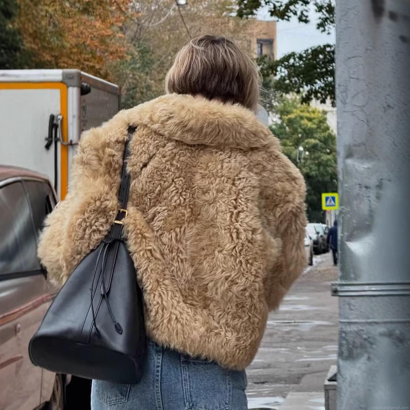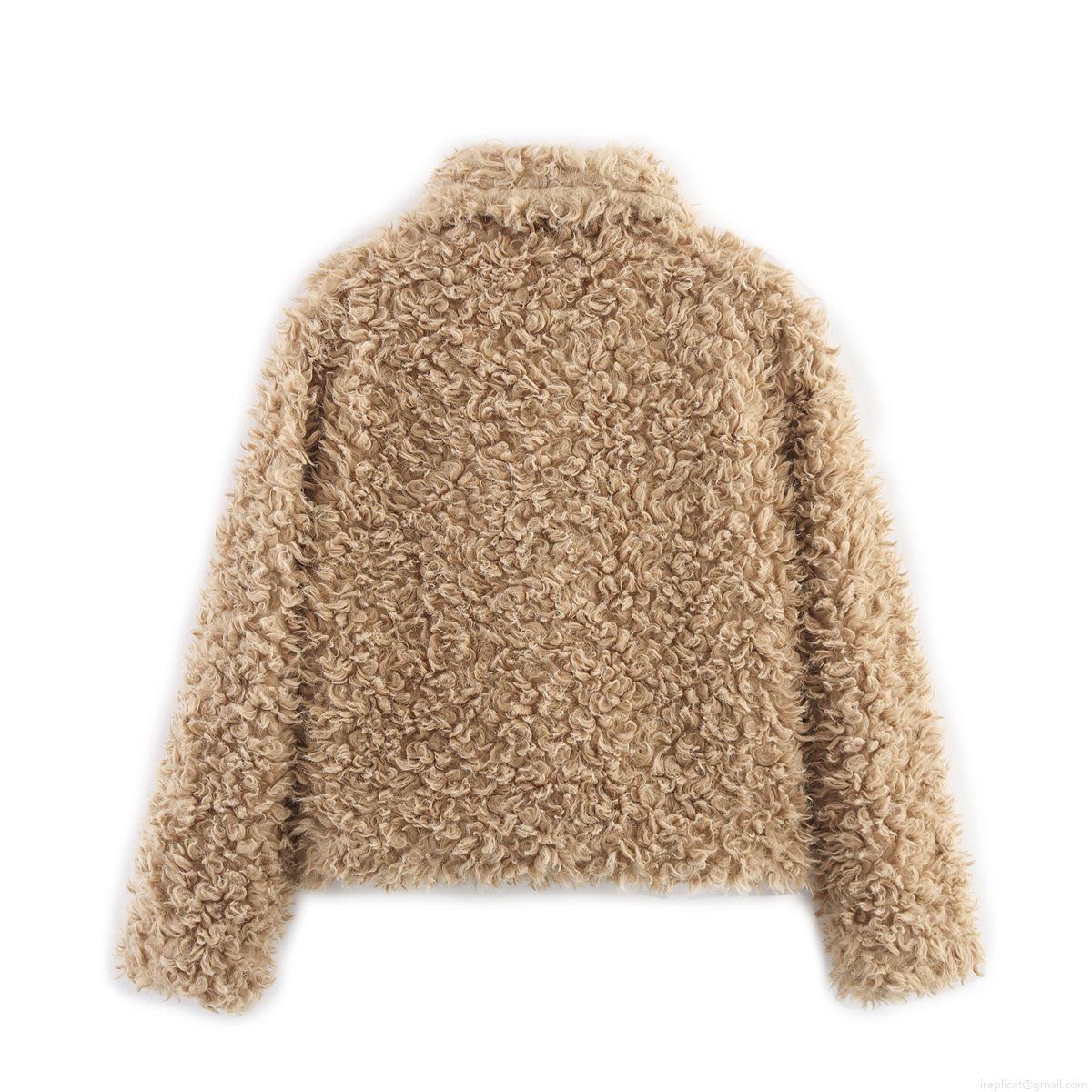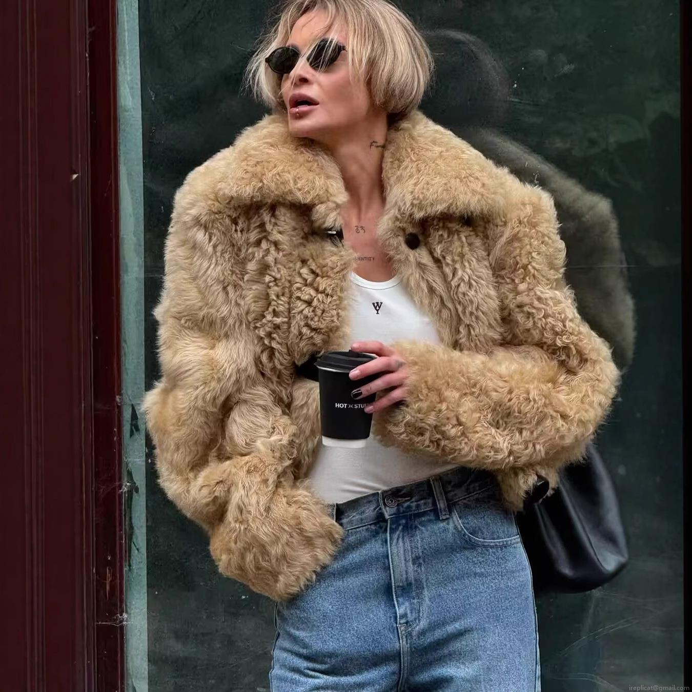 • Women Fashion Faux Fur Jacket Teddy Fleece Short Coat With Lapel Collar Long Sleeve Button Up Warm Solid Color Outerwear For Daily Urban Chic