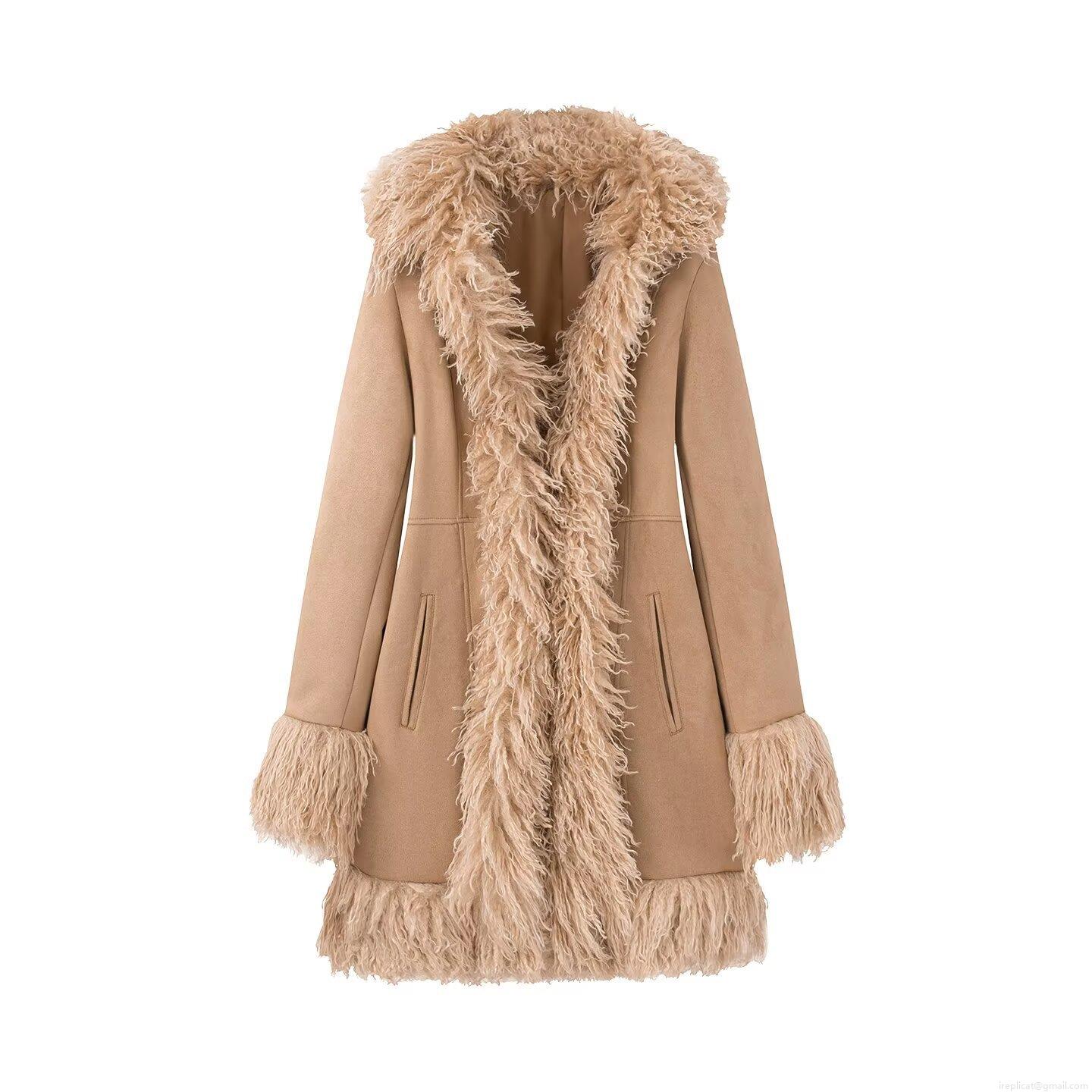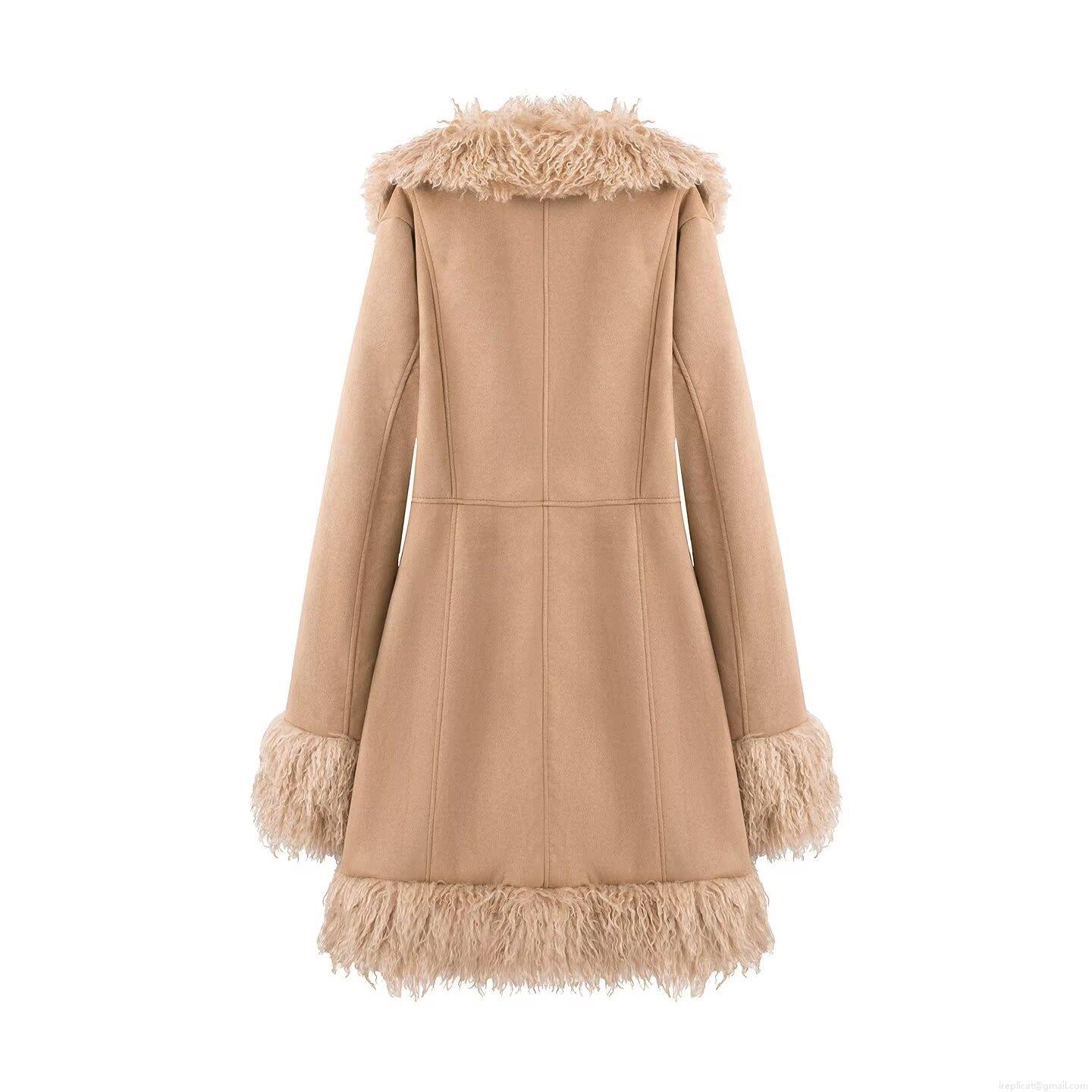 • Women Fashion Faux Fur Patchwork Suede Coat Elegant Lapel Mid-length Winter Warm Suede Plush Trim Outerwear Casual Jacket For Ladies