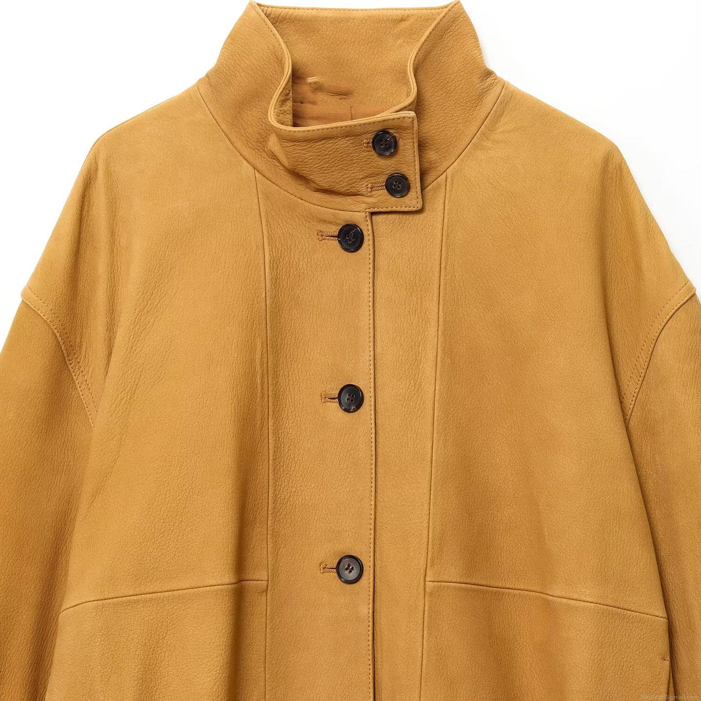 • Women Fashion Faux Leather Bomber Jacket Casual Stand Collar Button Down Long Sleeve Coat With Elastic Hem For Fall Winter