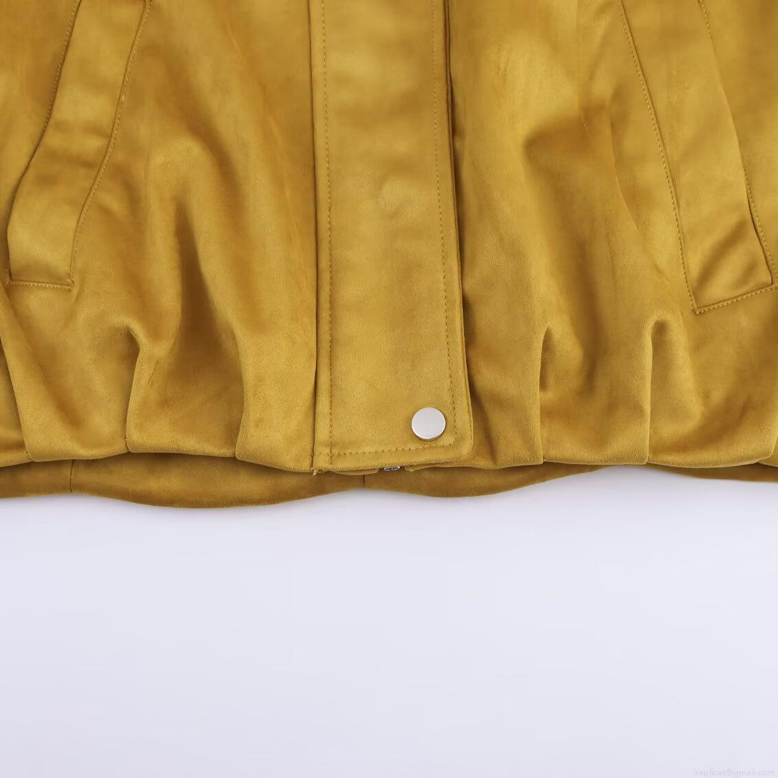 • Women Fashion Faux Suede Bomber Jacket Solid Color Lapel Collar Long Sleeve Short Coat With Pockets Casual Loose Fit Outwear Autumn Winter Streetwear Ladies