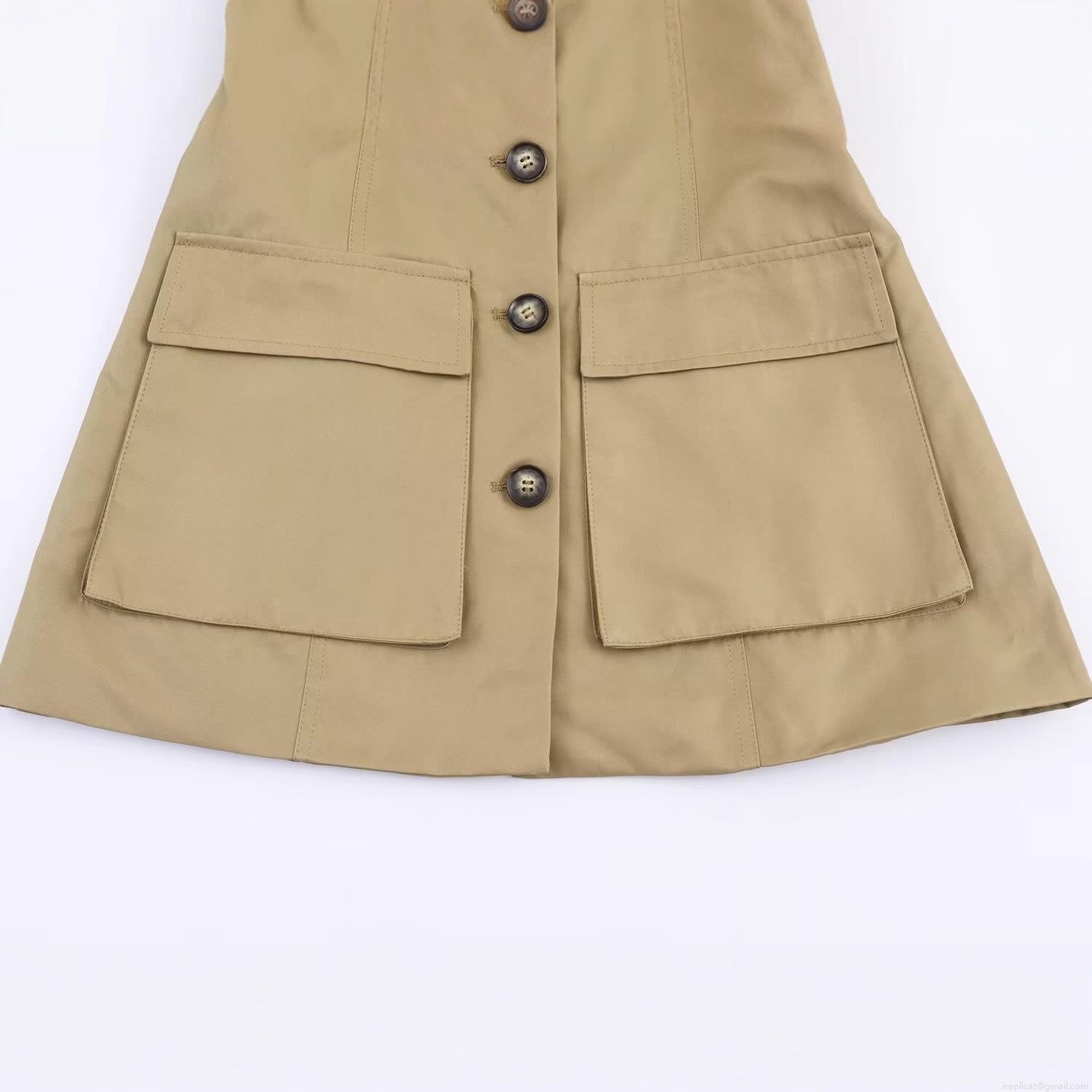 Solid Color, Shoulder Epaulettes, Stand-up Collar, Multiple Pockets, Marble-patterned Buttons, Waist Belt