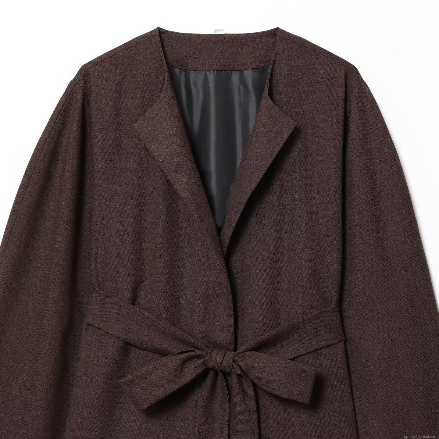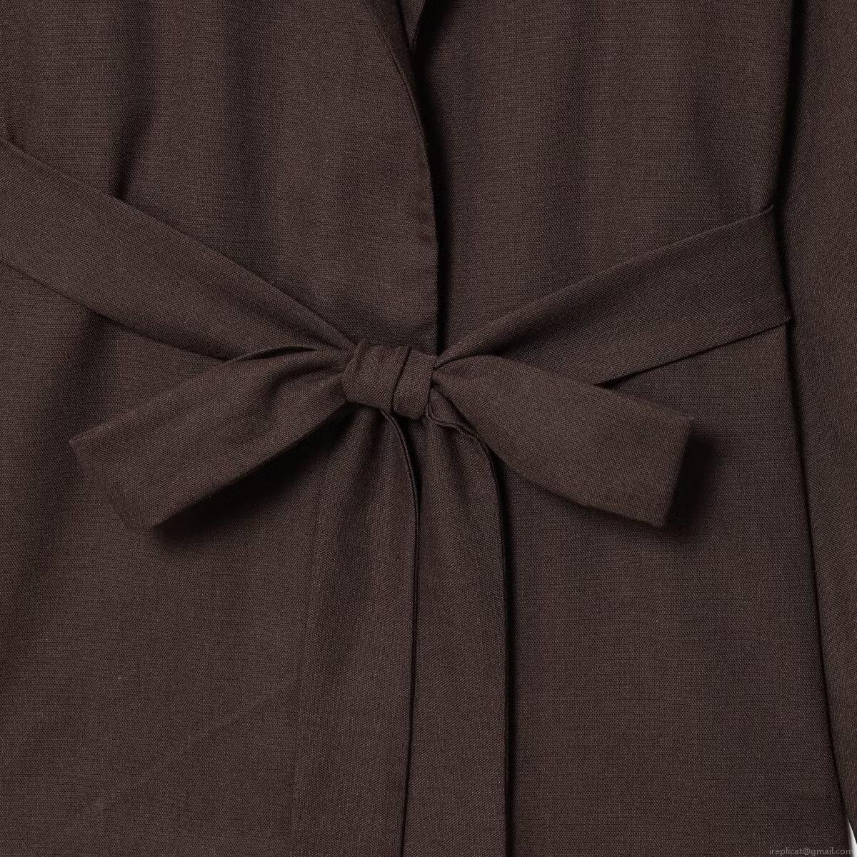 • Women Fashion Kimono Style Short Jacket Polyester Linen Texture V Neck Long Sleeve Self Tie Waist Belt Wrap Coat Casual Daily Outerwear