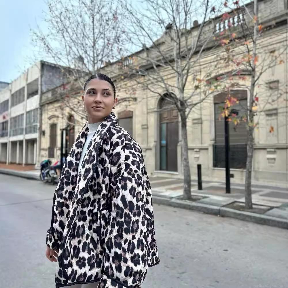 • Women Fashion Leopard Print Quilted Jacket Casual Loose Long Sleeve Pockets Lightweight Cardigan Coat For Autumn Winter Streetwear