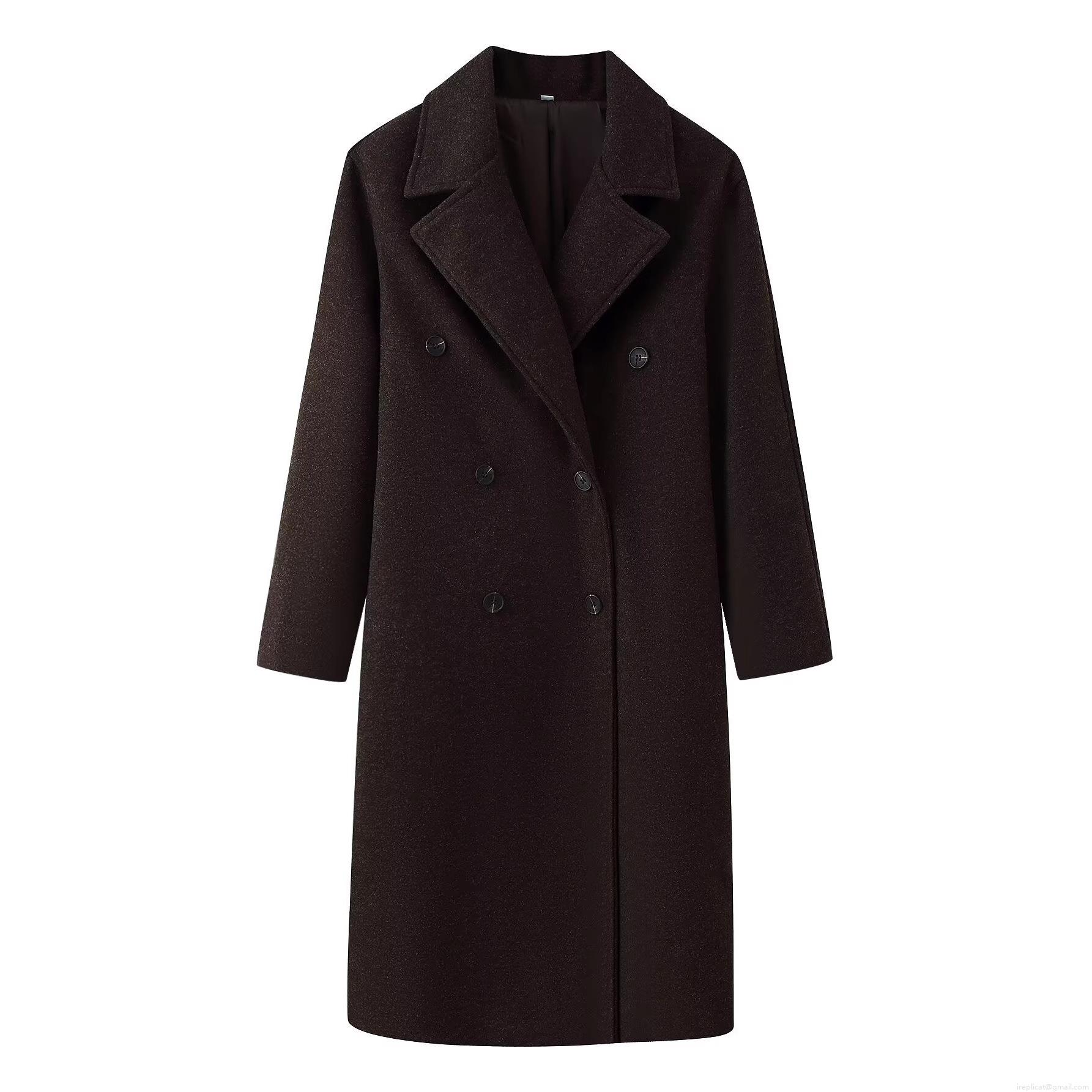 • Women Fashion Long Woolen Blend Coat Double-breasted Notch Lapel Warm Overcoat Winter Autumn Elegant Outerwear Jacket For Women Lady